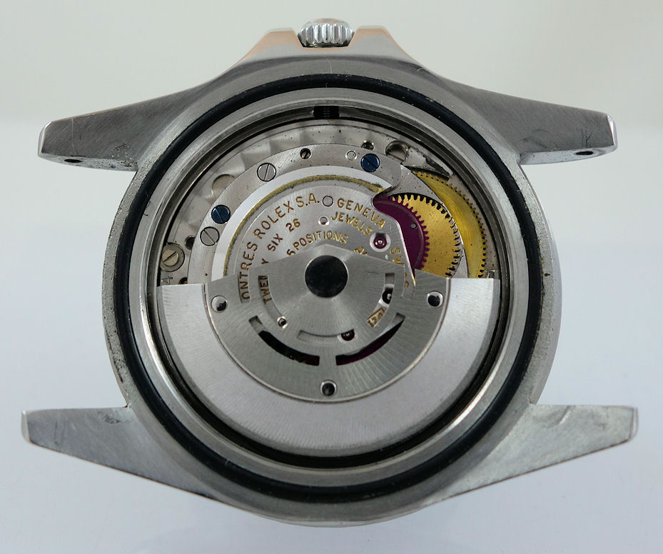 Stainless-steel Oyster case with domed plexiglas, screw-down winding crown and ”Pepsi” 24-hr bezel.