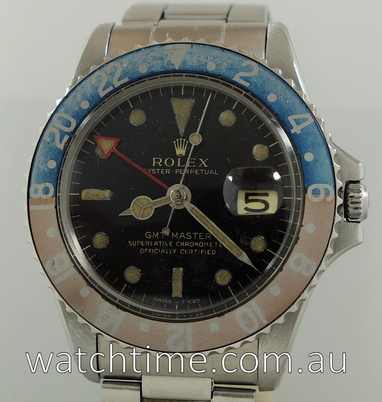 | Case | Stainless-steel Oyster case, bi-directional “Pepsi” bezel with 24-hr blue / red insert and plexiglas. |