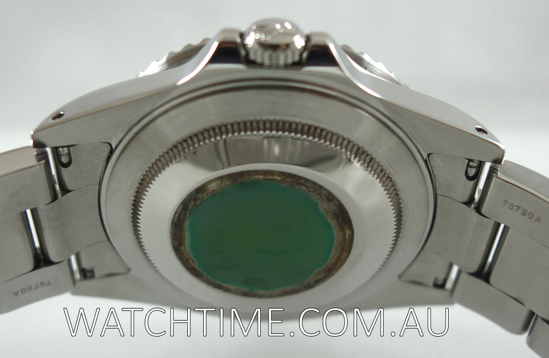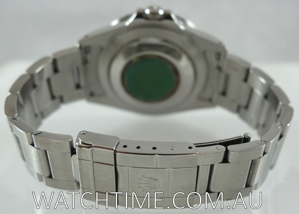 | Case | Stainless-steel Oyster screw-back case with screw-down crown and “Pepsi” red/blue 24-hr rotating bezel. Sapphire crystal glass. |