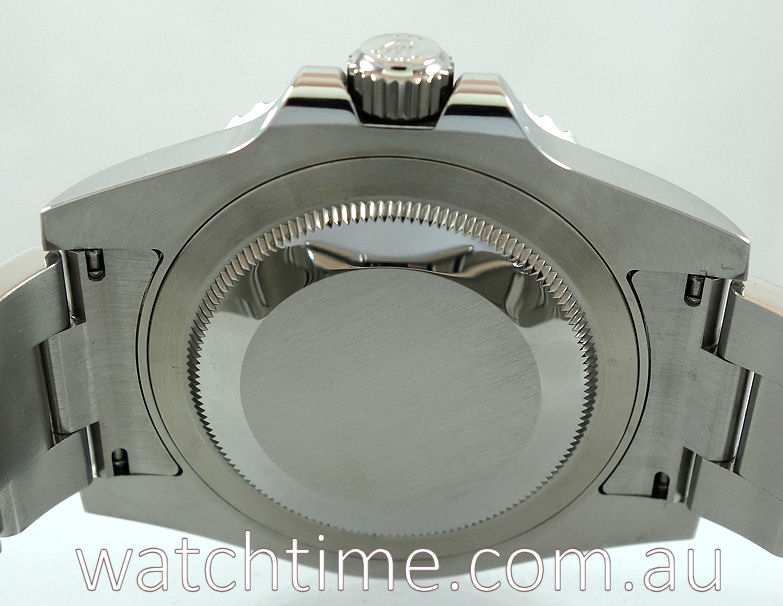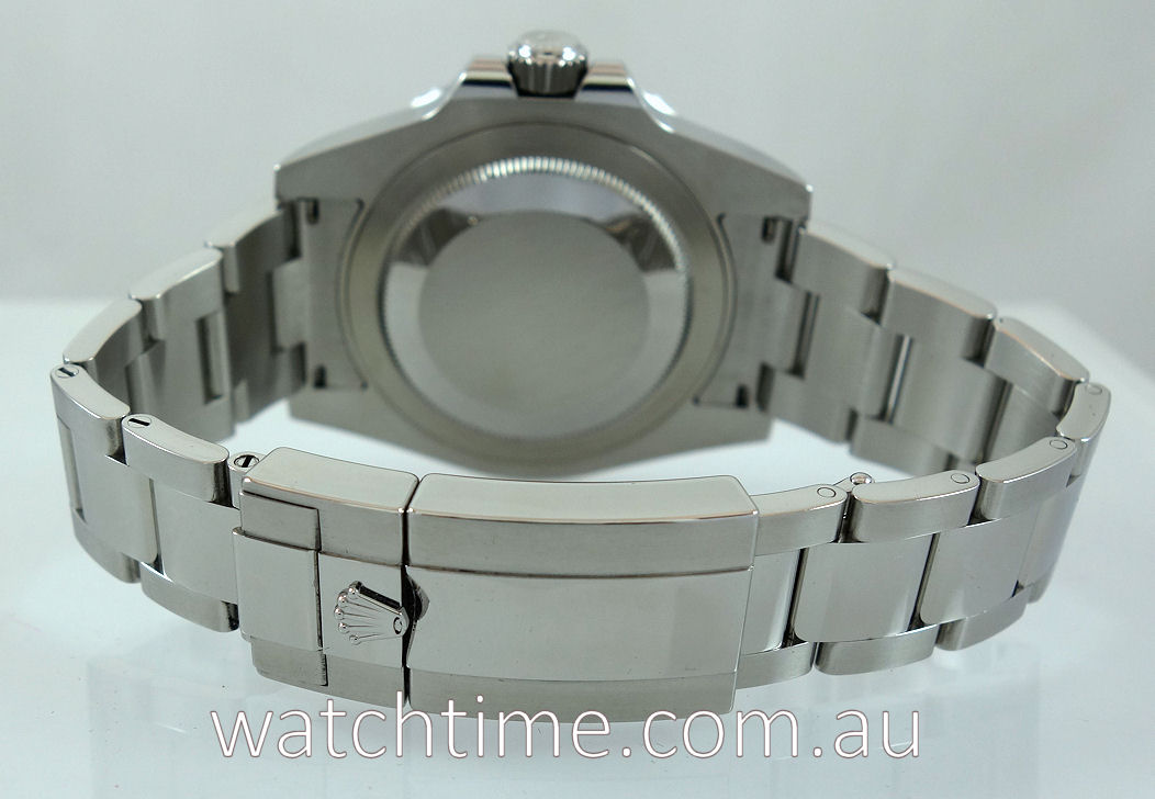 | Case | Stainless-Steel Oyster case with screw-down crown and Sapphire crystal. Rotating bezel with blue and black 24-hr ceramic insert for GMT function. |