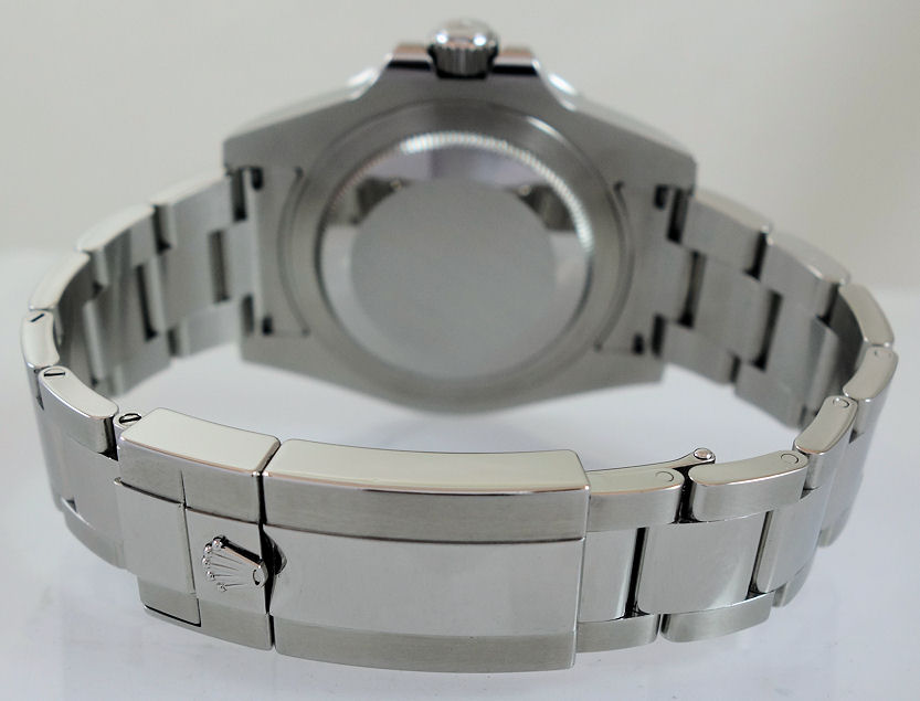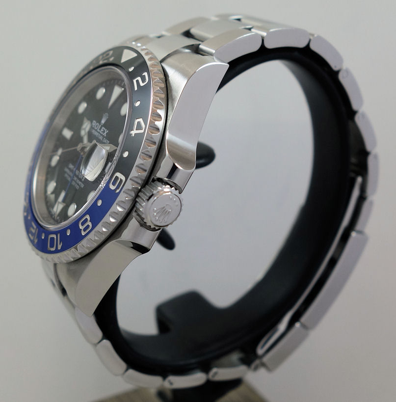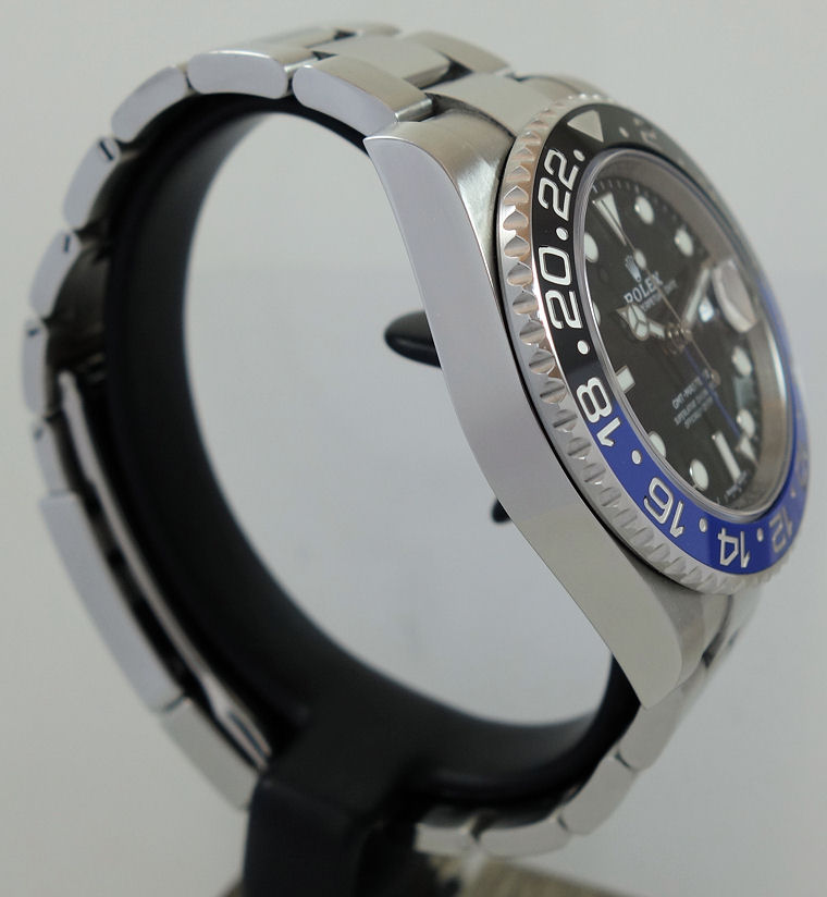 | Case | Stainless-Steel Oyster case with screw-down crown and Sapphire crystal. Rotating bezel with blue and black 24-hr ceramic insert for GMT function. |