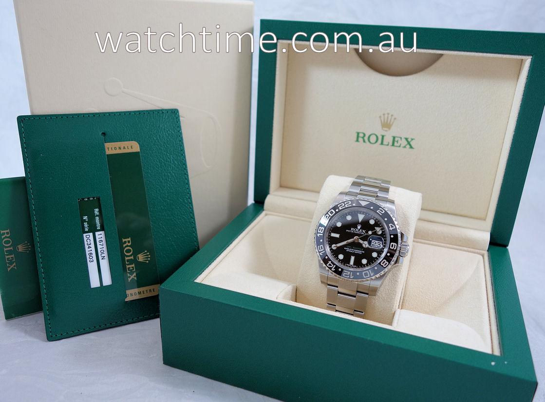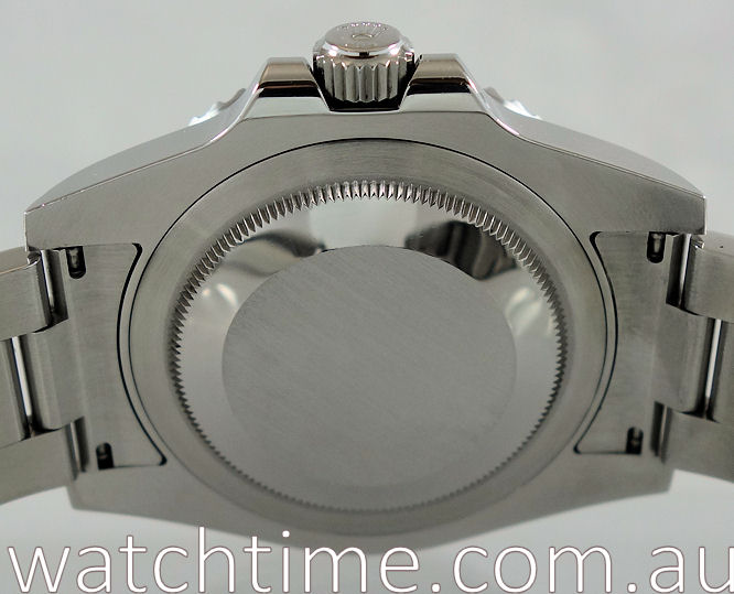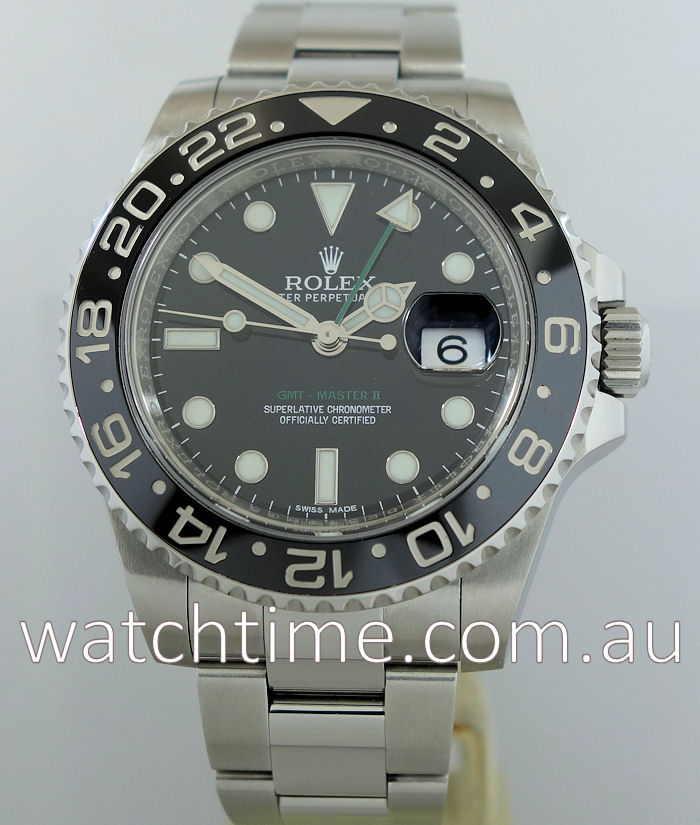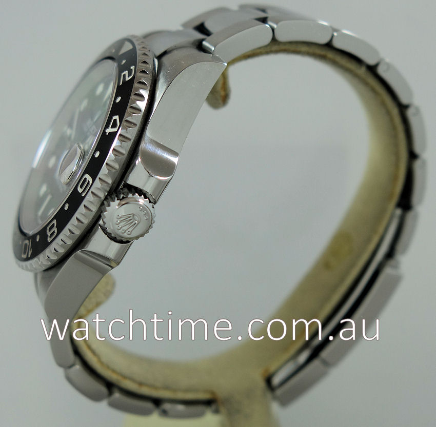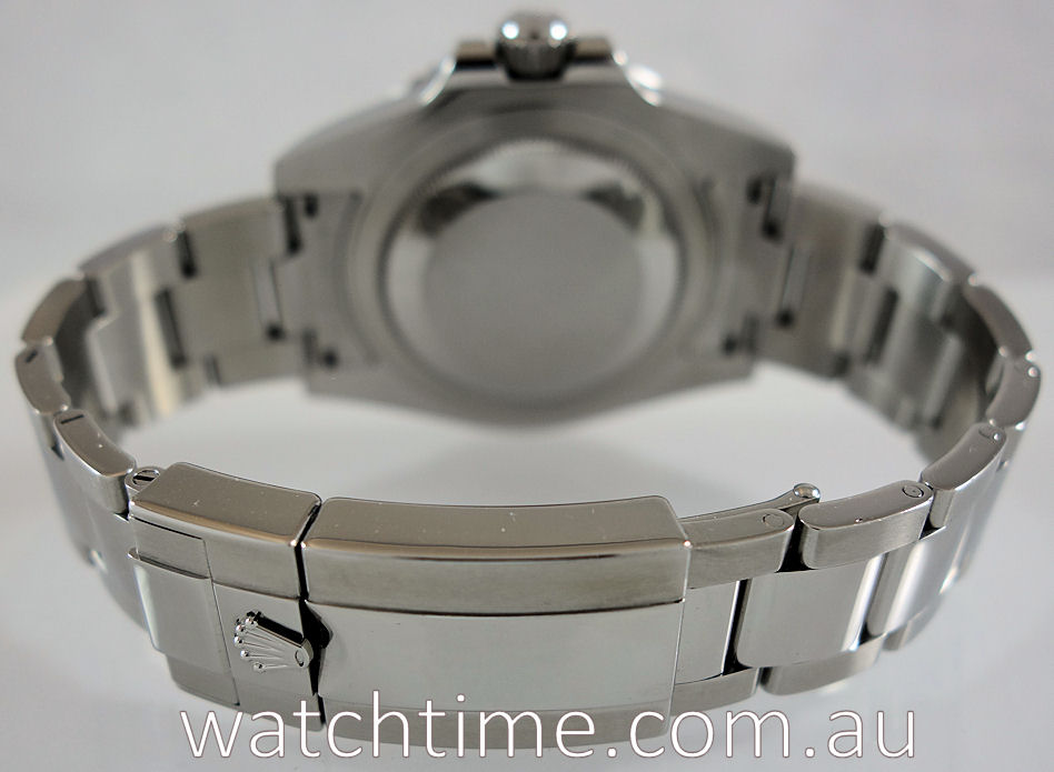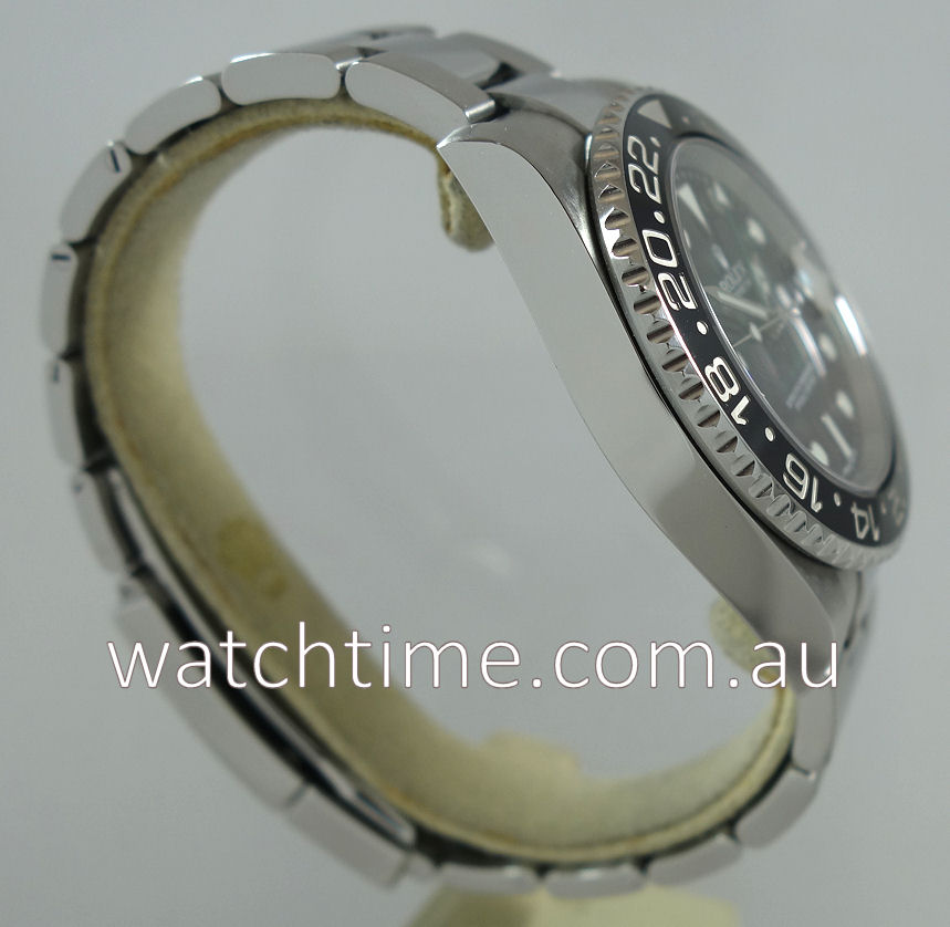 | Case | Stainless-Steel Oyster case with screw-down crown and Sapphire crystal. Rotating bezel with black 24-hr ceramic insert for GMT function. |