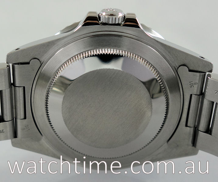 | Case | Stainless-steel Oyster screw-back case with screw-down crown and “Coke” red/black 24-hr rotating bezel. Sapphire crystal glass. |