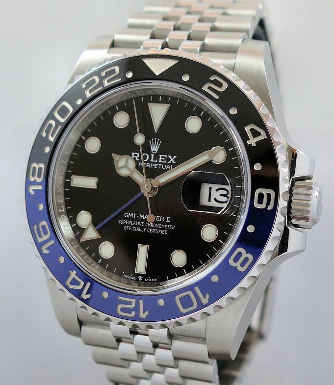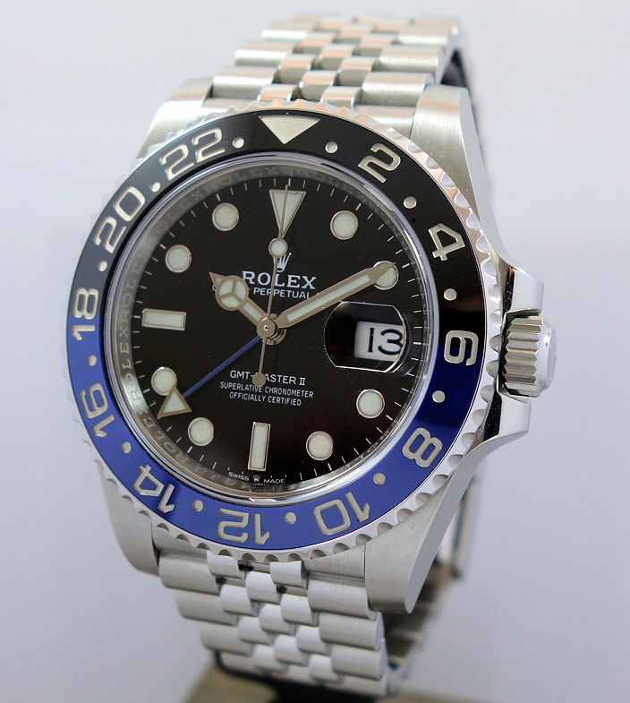 | Dial | Black with luminous hands and hour indices. Blue arrow hand for GMT. Date at 3 o’clock. |