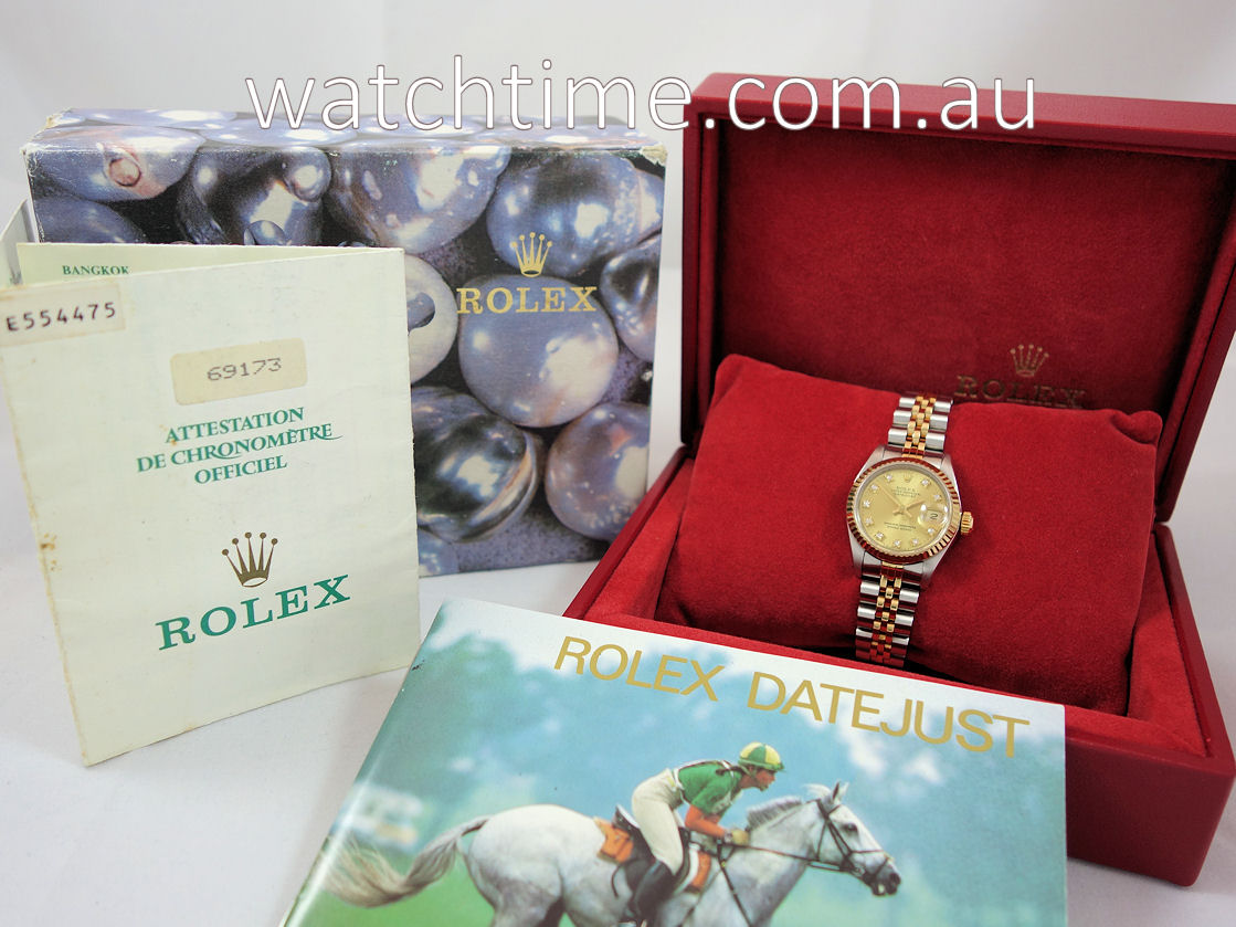 Rolex Lady Datejust 18k & Steel, Diamond-dial 69173 B&P
