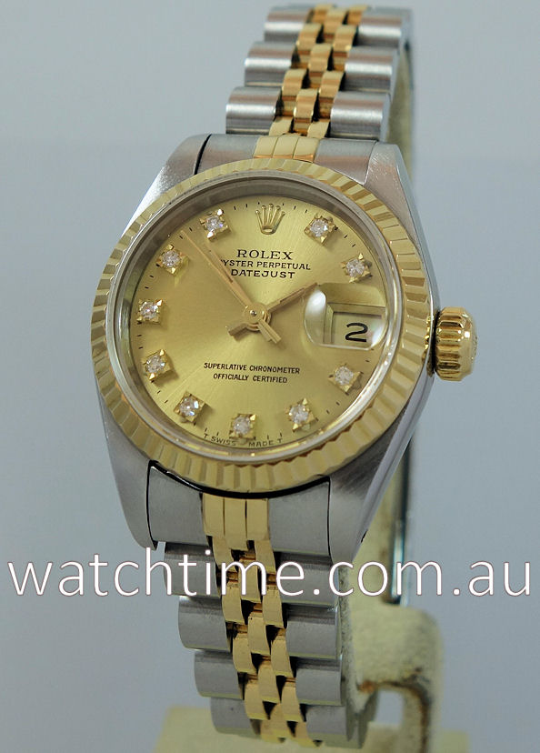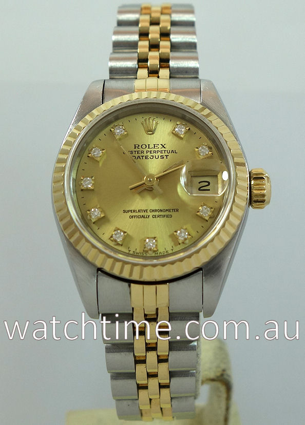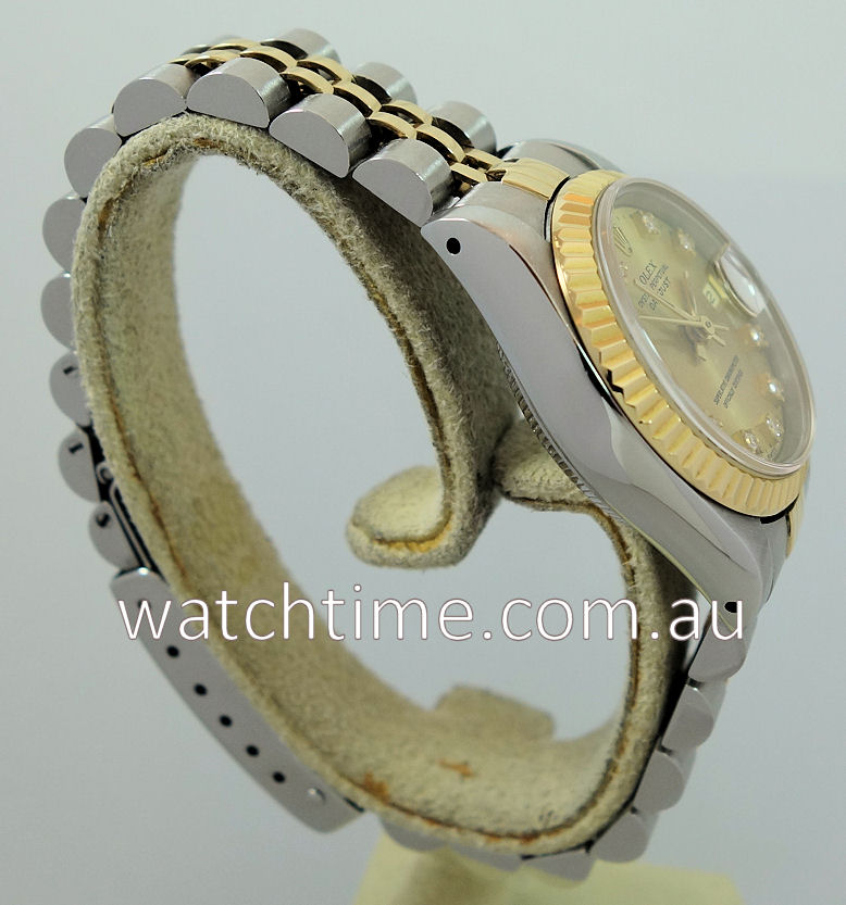 | Dial | Champagne dial with Diamond hour markers, gold hands and date at 3 h pos. |