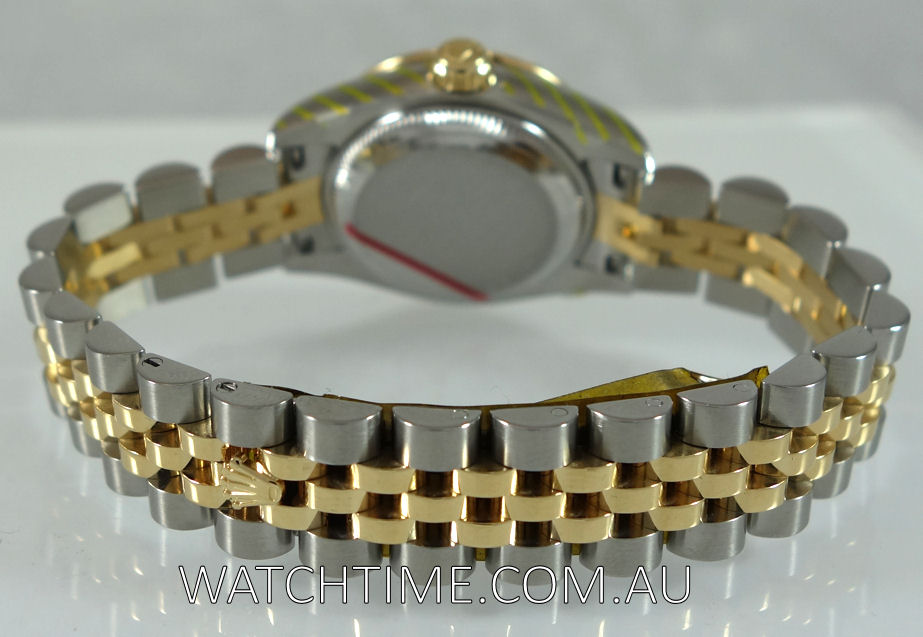 | Band | 18k Yellow-Gold and Stainless-steel Jubilee bracelet with concealed folding clasp by Rolex. |