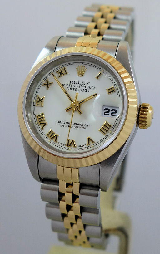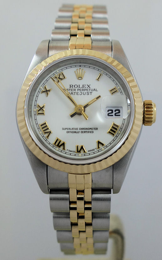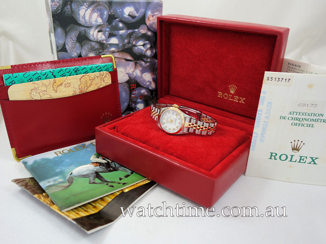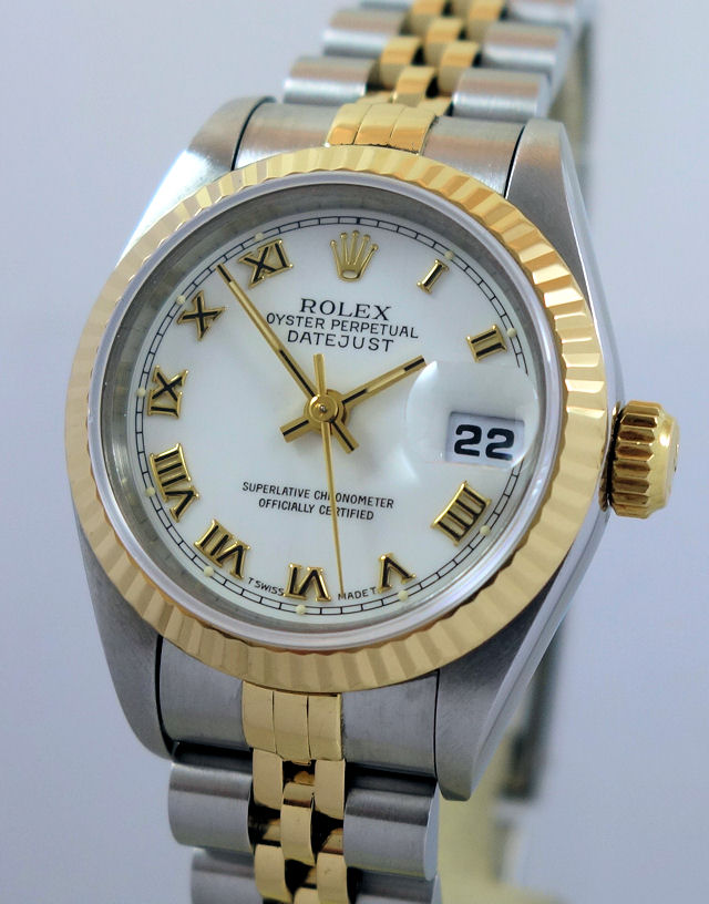 Rolex Lady Datejust 18k & Steel, White Roman dial 69173 Full set!