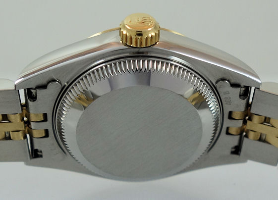 | Case | Stainless-Steel Oyster case with 18k Yellow-Gold fluted bezel, screw-down crown and Sapphire crystal glass. |