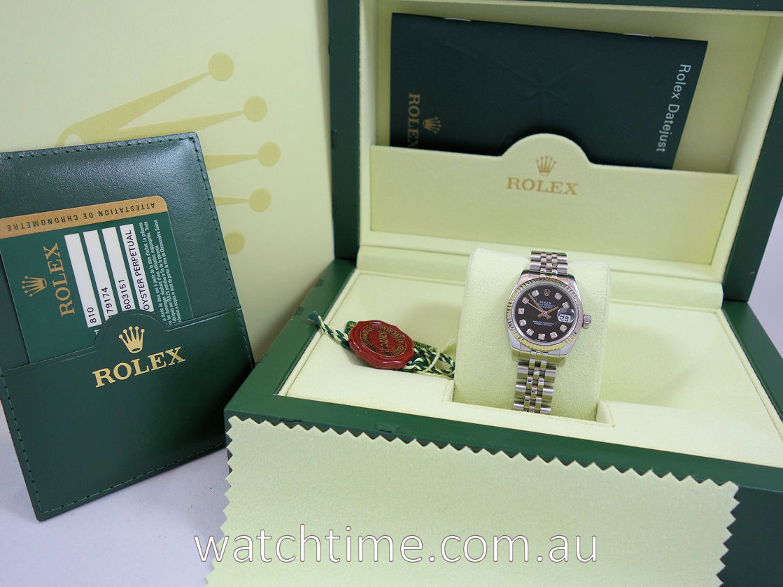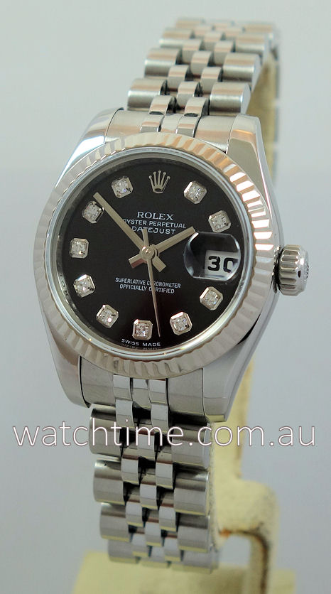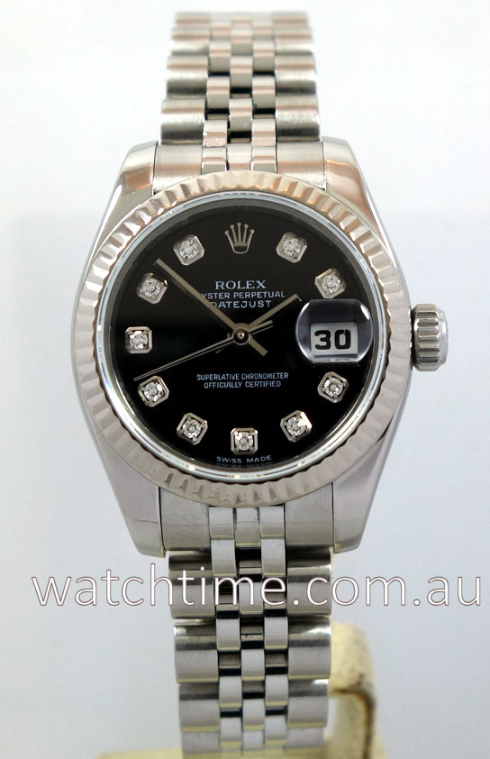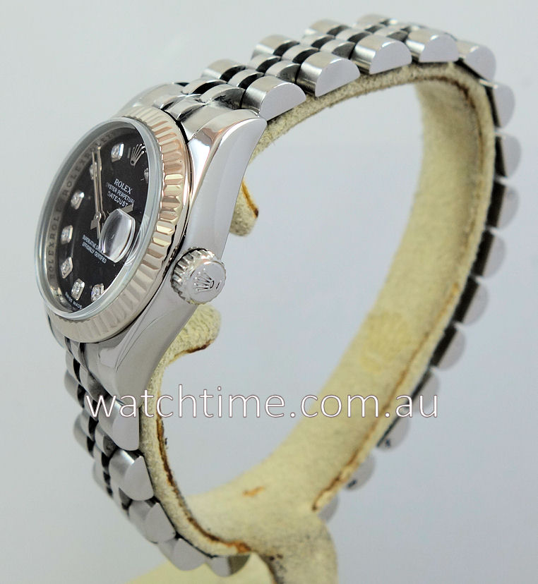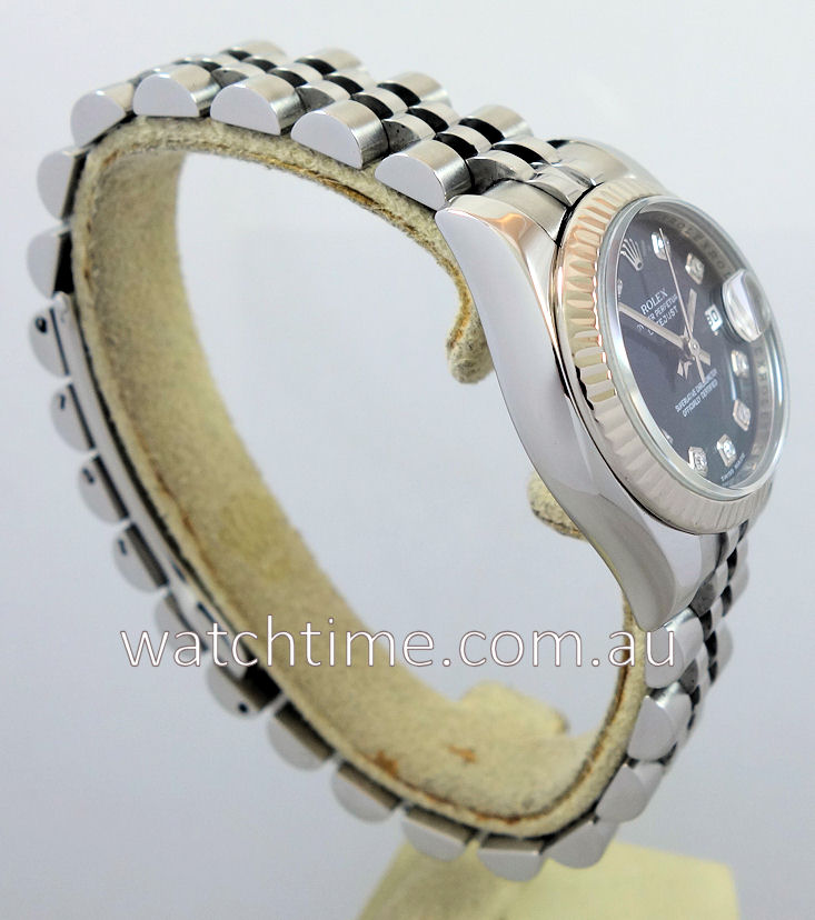 Rolex Lady Datejust Steel & 18k White-Gold, Black Diamond dial 179174