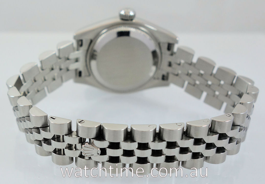 | Case | Steel Oyster case with 18k White-Gold fluted bezel. Sapphire crystal glass and screw-down crown. |