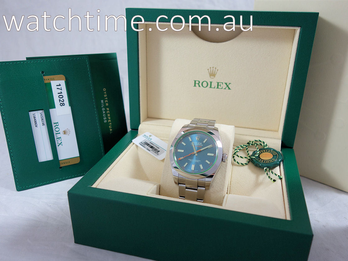 Rolex Milgauss Blue Dial, Green Crystal 116400GV Dec. 2018