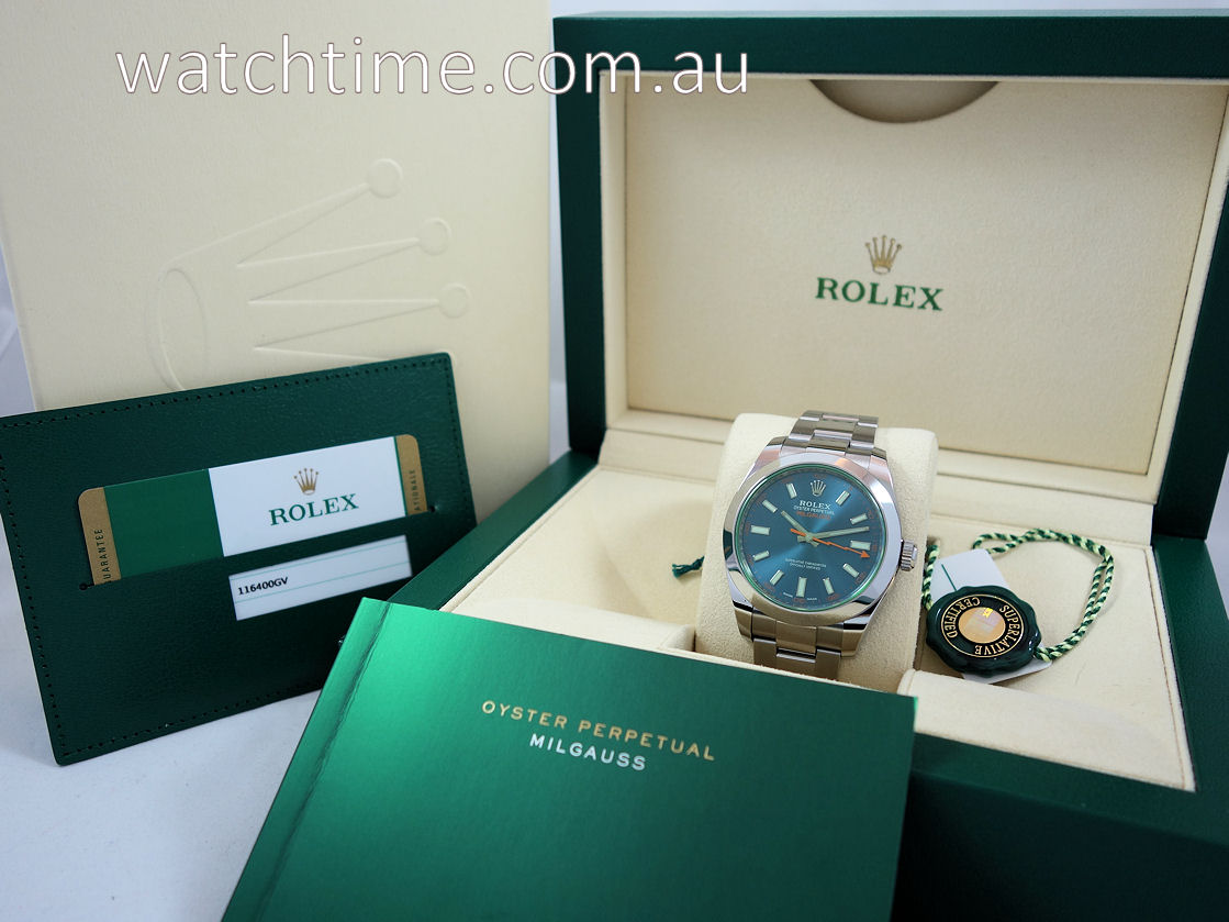 Rolex Milgauss Blue Dial, Green Crystal 116400GV 2019