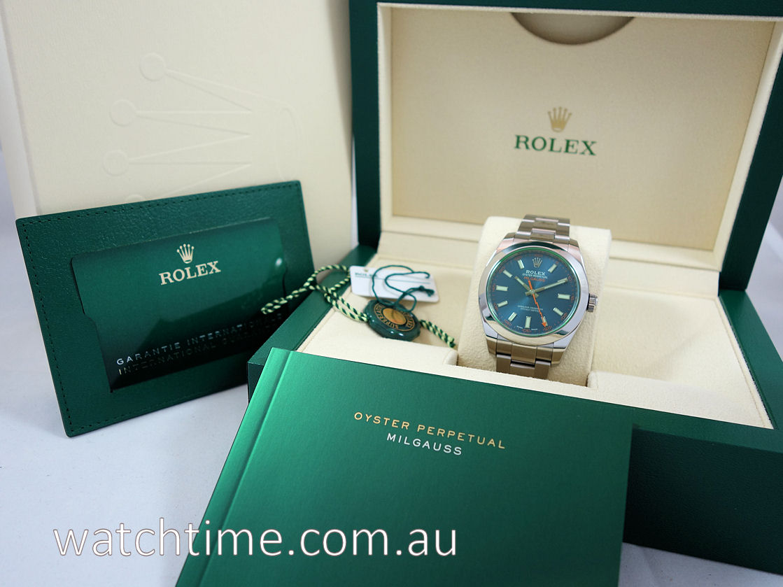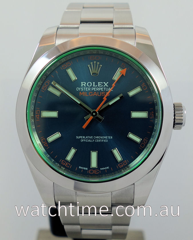 Rolex Milgauss Blue Dial, Green Crystal 116400GV 2021