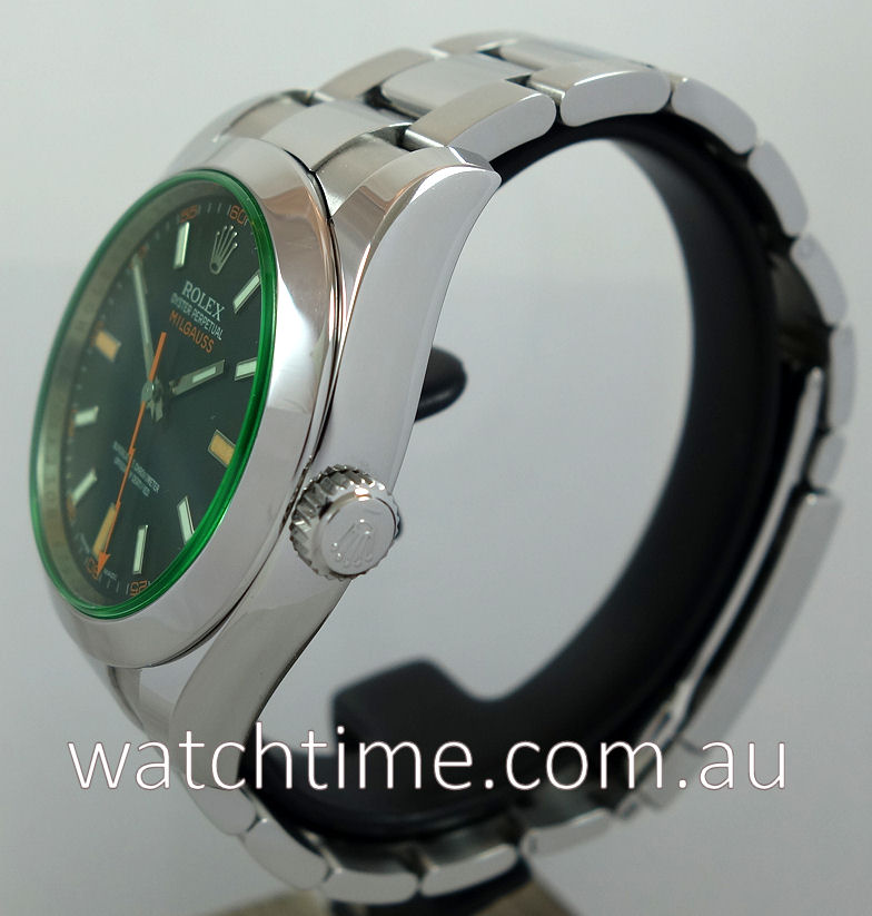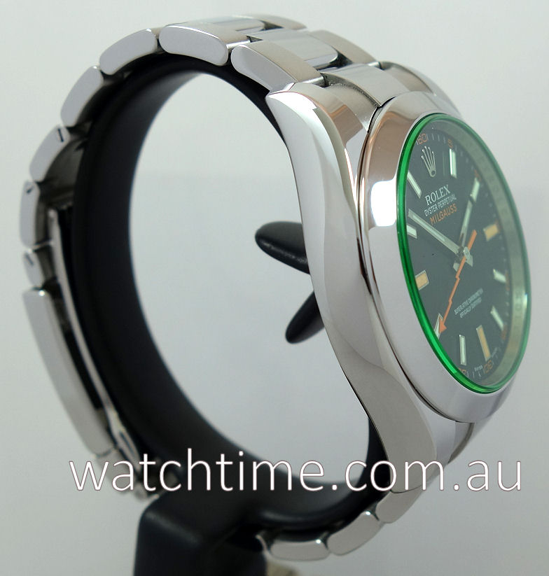 | Case | Polished stainless-steel case with screw-down crown and smooth bezel. GREEN Sapphire crystal glass. |