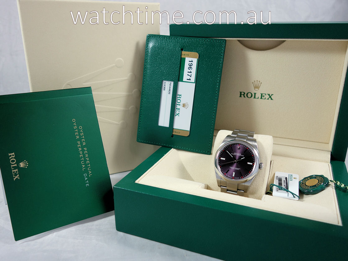 Rolex Oyster 39mm Red Grape Dial 114300 Box & Card