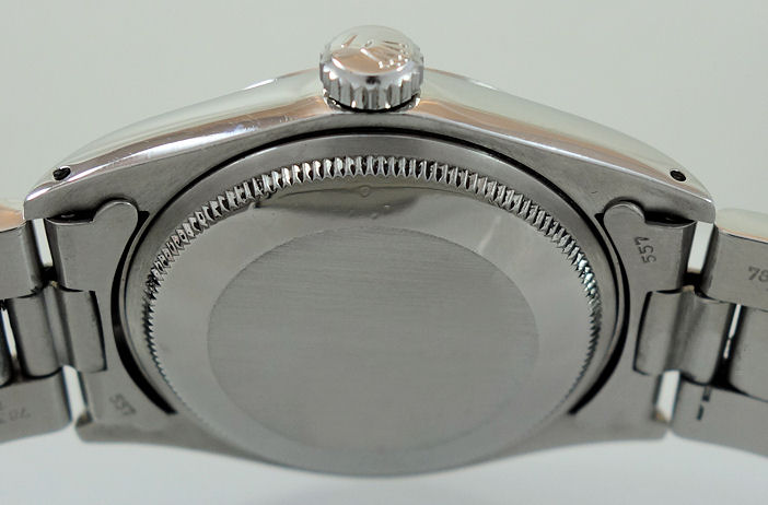 Stainless-steel Oyster case with screw-down winding crown and plexiglass.
