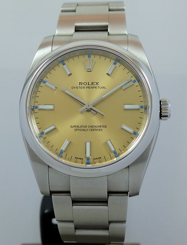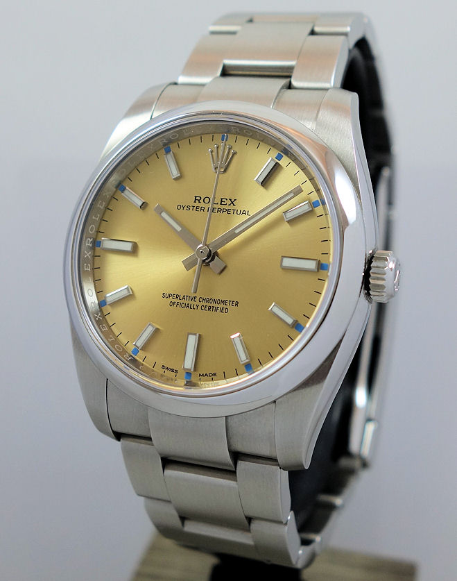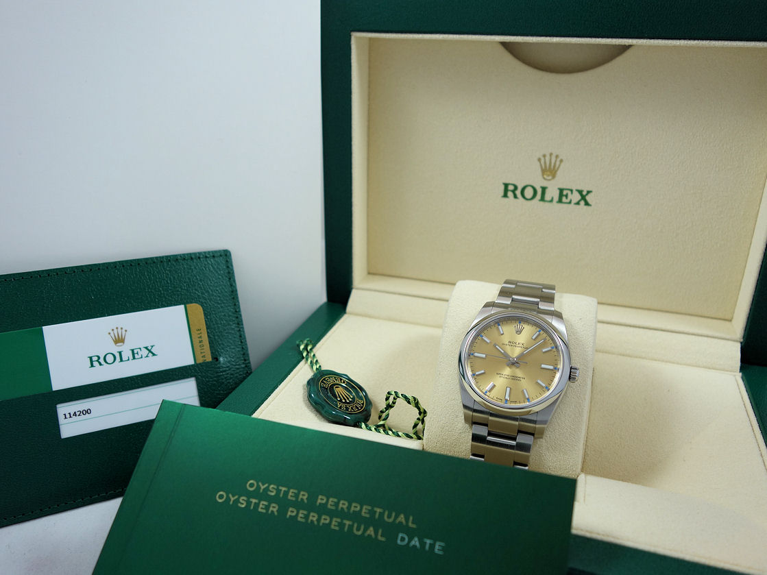 Rolex Oyster Perpetual 34 Gold/Blue dial 114200 Box & Card 2019