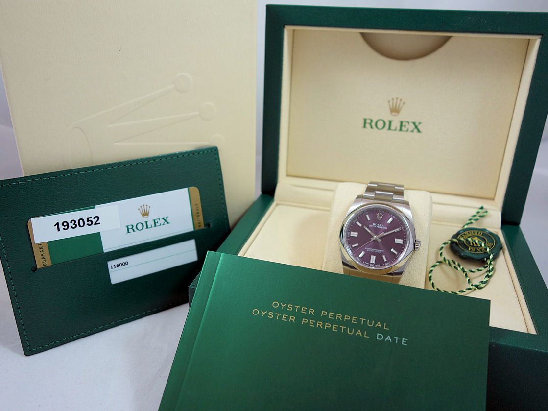 Rolex Oyster Perpetual Red Grape Dial 36mm 116000 Sep 2019 Box & Card