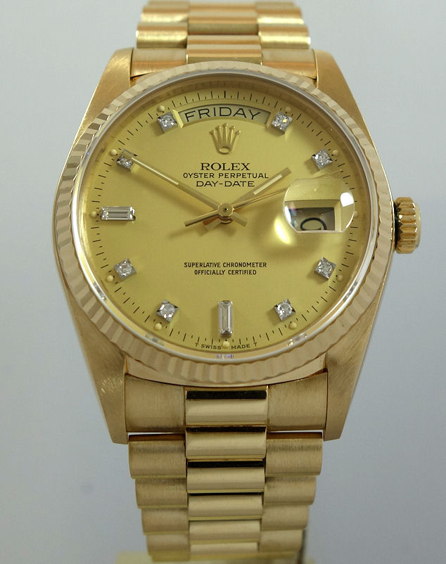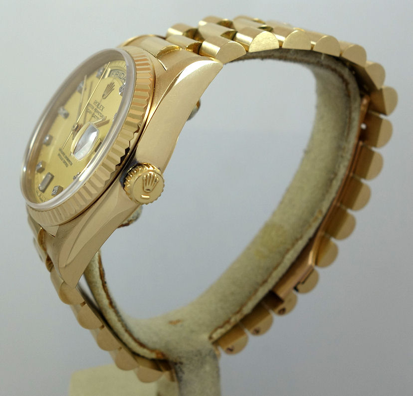 | Band | 18k Yellow-Gold President bracelet with concealed clasp. |