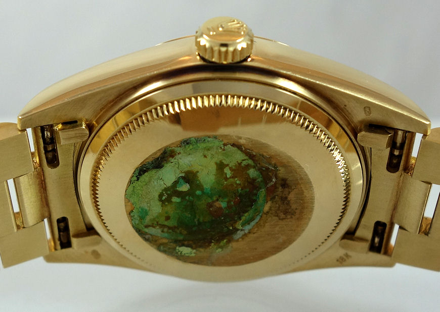 | Case | 18k Yellow-Gold Oyster case with fluted bezel, screw-down crown and Sapphire crystal glass with cyclops over the date for magnification |