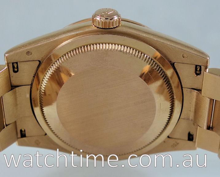18k Everose-Gold Oyster case with fluted bezel, screw-down crown and Sapphire crystal glass with cyclops over the date for magnification