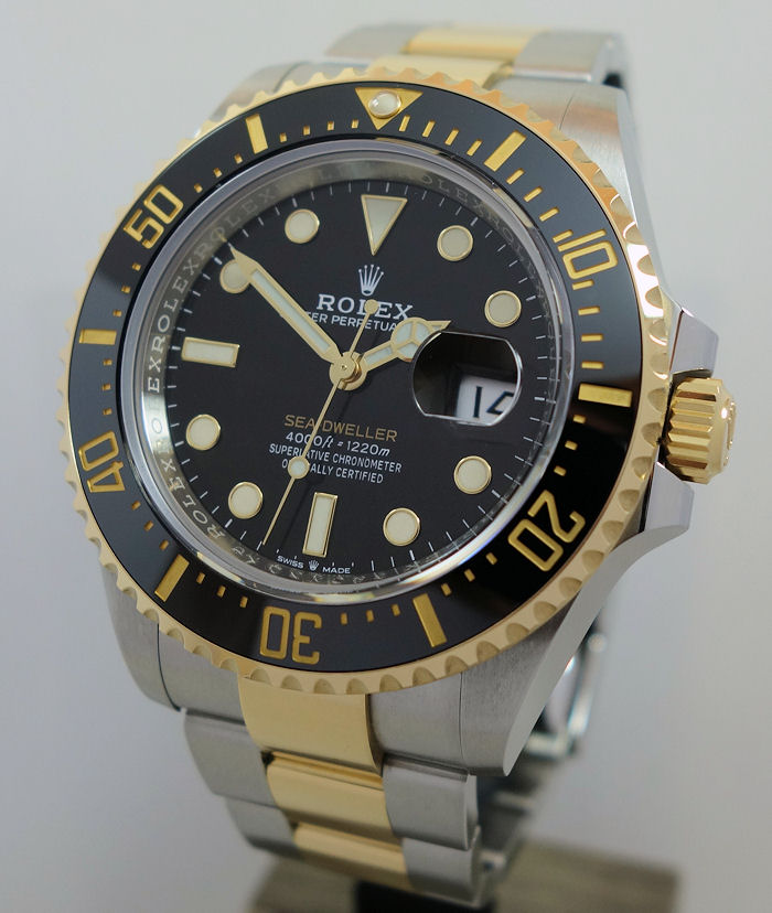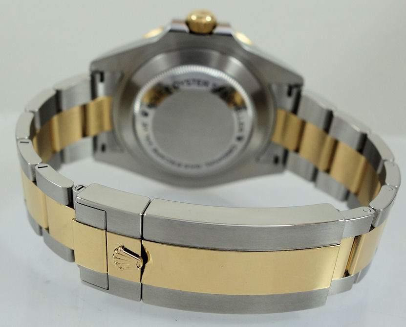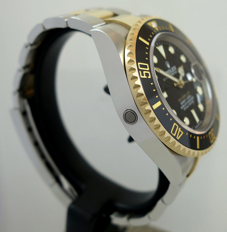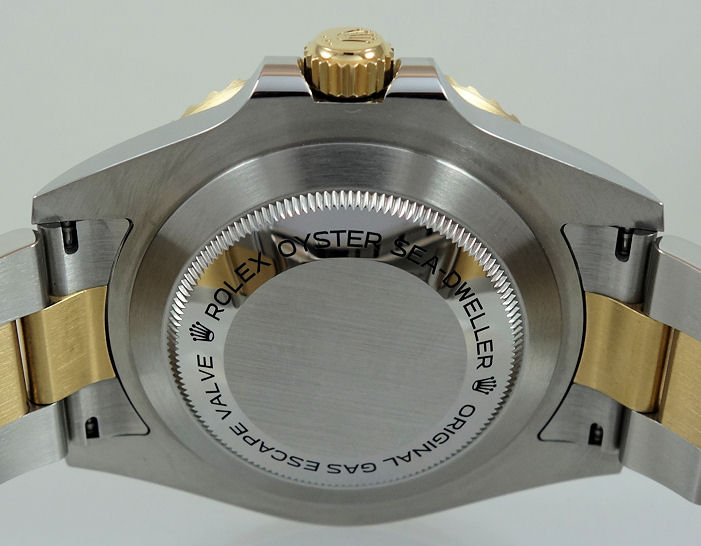 | Case | Stainless-steel Oyster case with screw-down crown, helium valve and Sapphire crystal glass. 18k Yellow-Gold unidirectional rotatable bezel; 60-minute graduated, scratch-resistant Cerachrom insert in c |