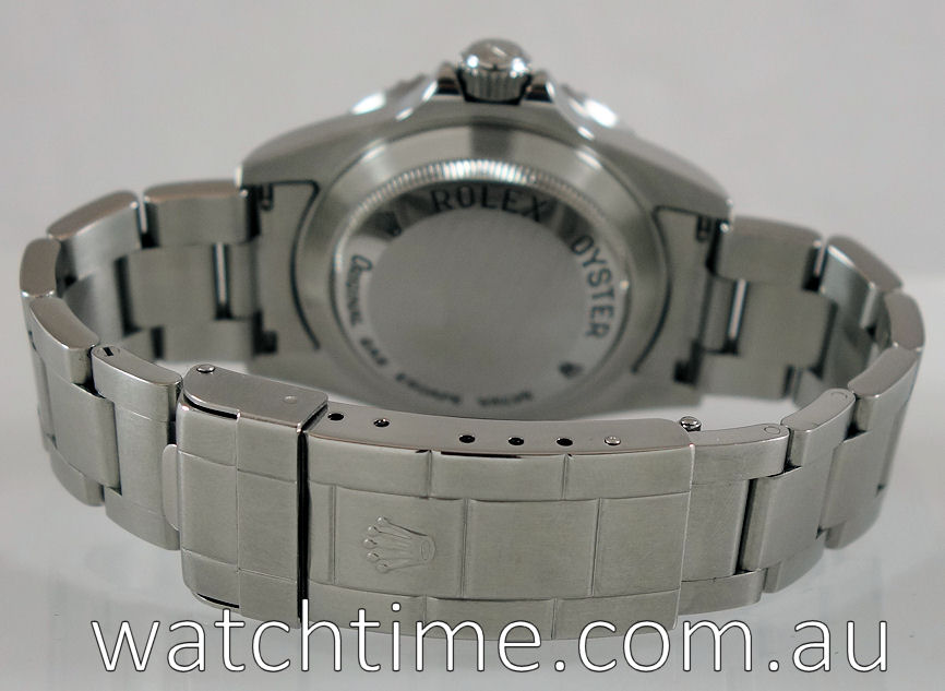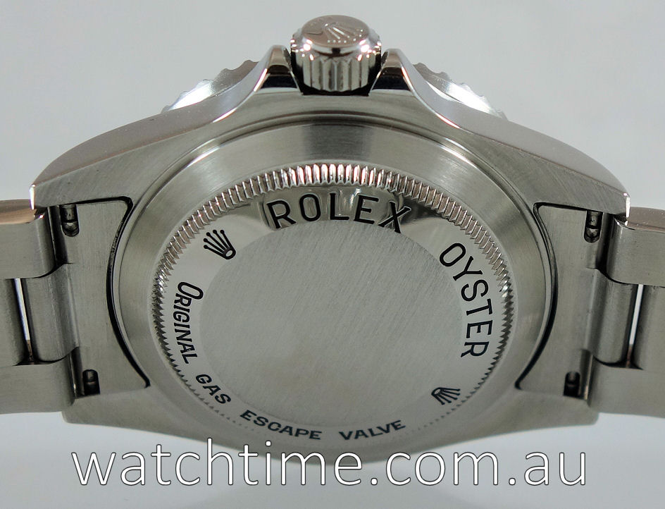 | Case | Stainless-steel Oyster case with triplock crown, helium value and Sapphire crystal. Uni-directional rotating bezel. |