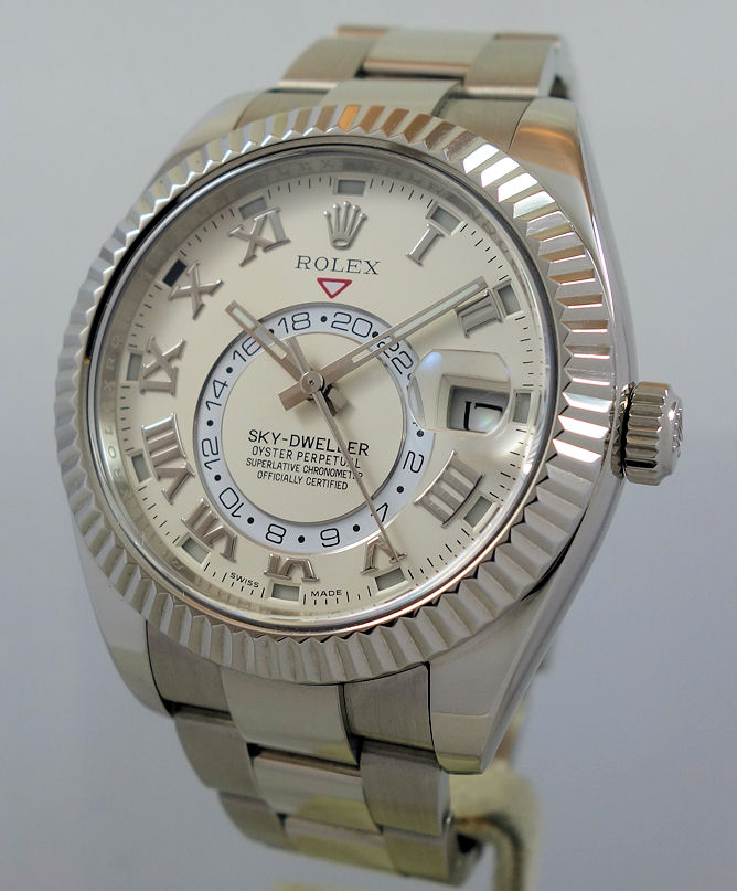 Rolex Sky-Dweller 18ct WHITE-GOLD Ivory Roman-Numeral Dial 326939 Box & Card