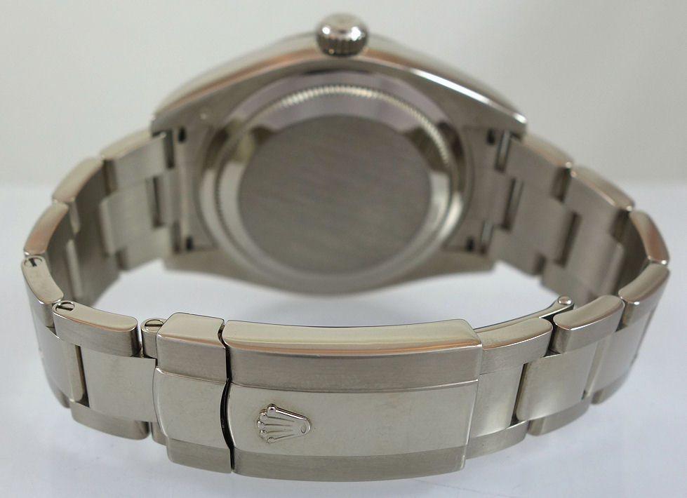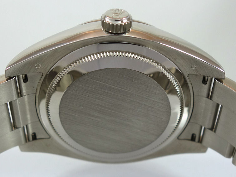| Case | 18ct White-Gold Oyster case with fluted ‘Ring Command system’ bezel, screw-in crown and sapphire crystal glass. |