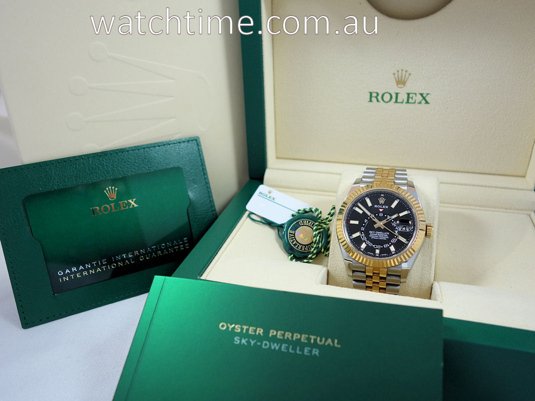 Rolex Sky-Dweller 18k & Steel 326933 Black Dial Box & Card 2021