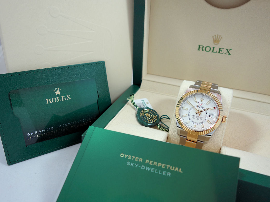 Rolex Sky-Dweller 18k & Steel 326933 White Dial Box & Card 2021 "As New"