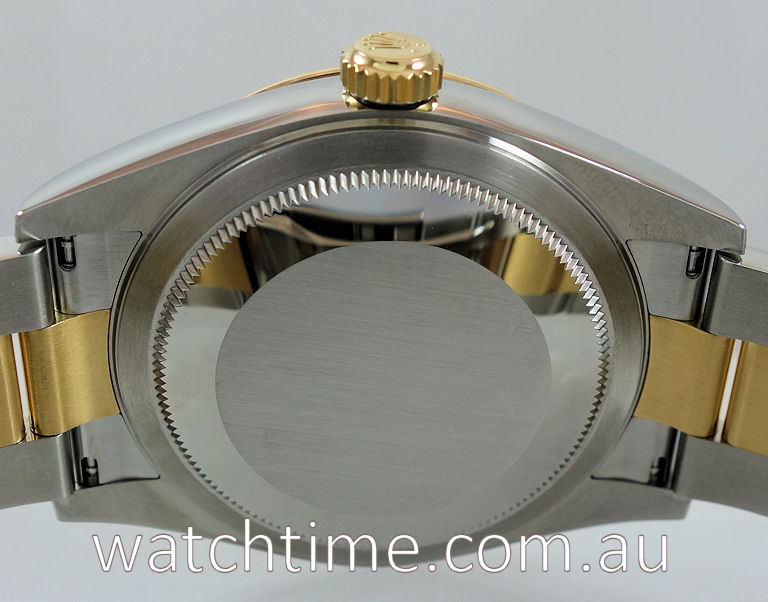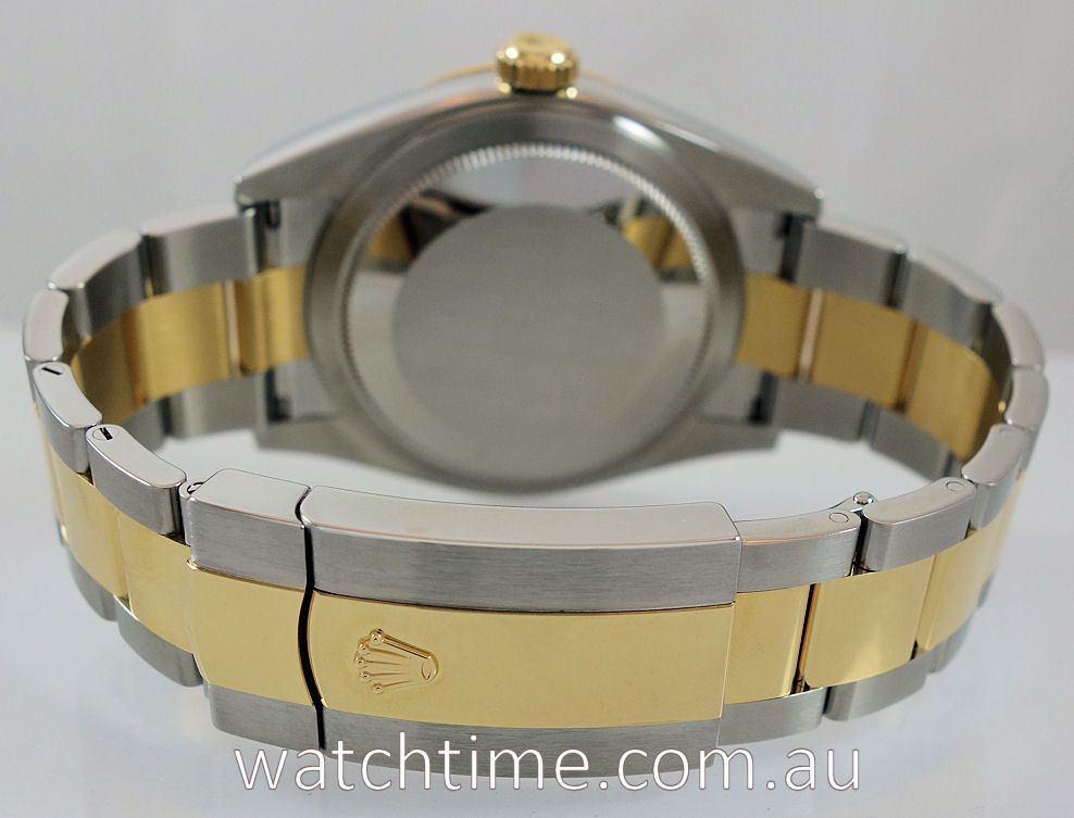 | Case | Oyster case in Stainless-steel with 18k Yellow-Gold bezel, screw-down crown and Sapphire crystal glass. |