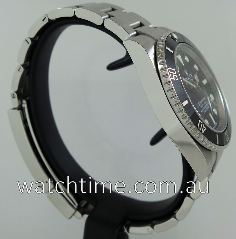 | Case | Stainless-steel Oyster case with screw-lock winding crown and uni-directional rotating diver’s bezel. Sapphire crystal glass. |