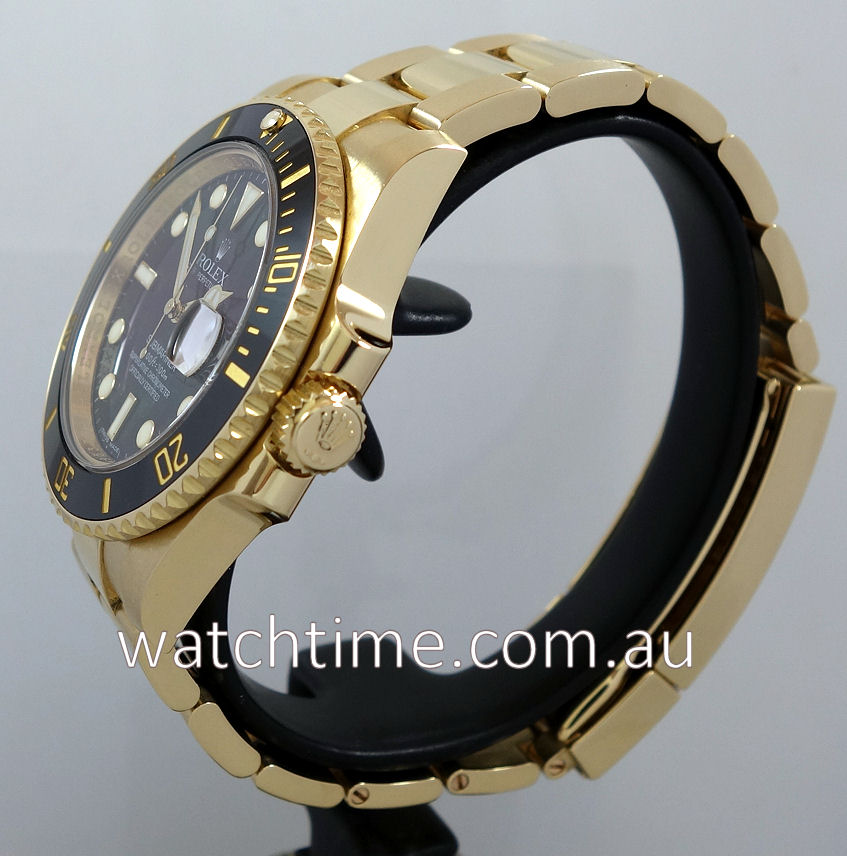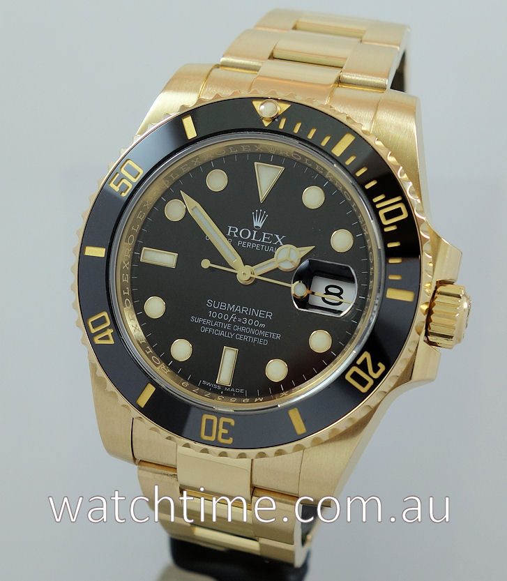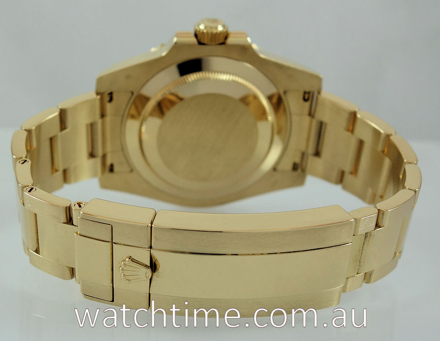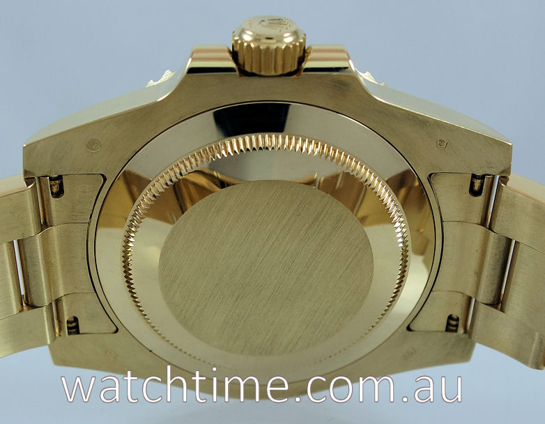 | Case | 18k Yellow-Gold Oyster case with screw-down crown, unidirectional rotating diver’s bezel with black Ceramic insert and Sapphire crystal glass. |