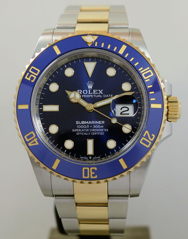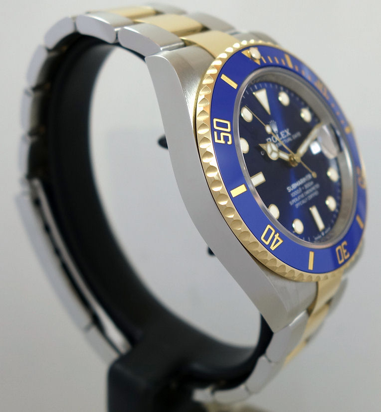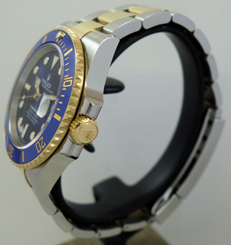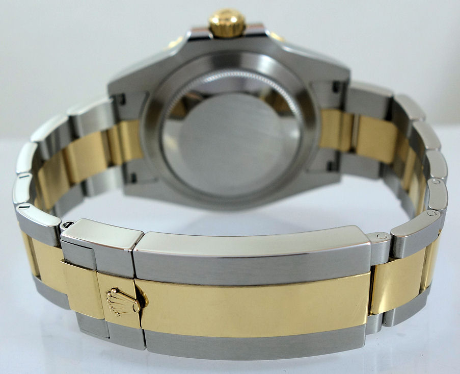 | Case | Stainless-steel Oyster case with 18k Yellow-Gold & black Ceramic uni-directional rotating diver bezel, screw-down crown and Sapphire crystal glass. |