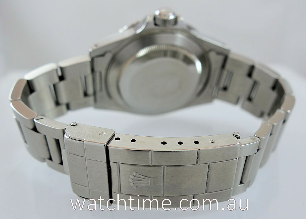 Stainless-steel Oyster case with screw-lock winding crown and uni-directional rotating diver’s bezel. Sapphire crystal glass.