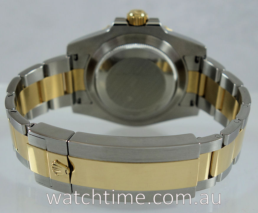 | Case | Stainless-Steel Oyster case with 18k Yellow-Gold and blue Ceramic bezel. Sapphire crystal glass. Triplock screw-down winding crown. |