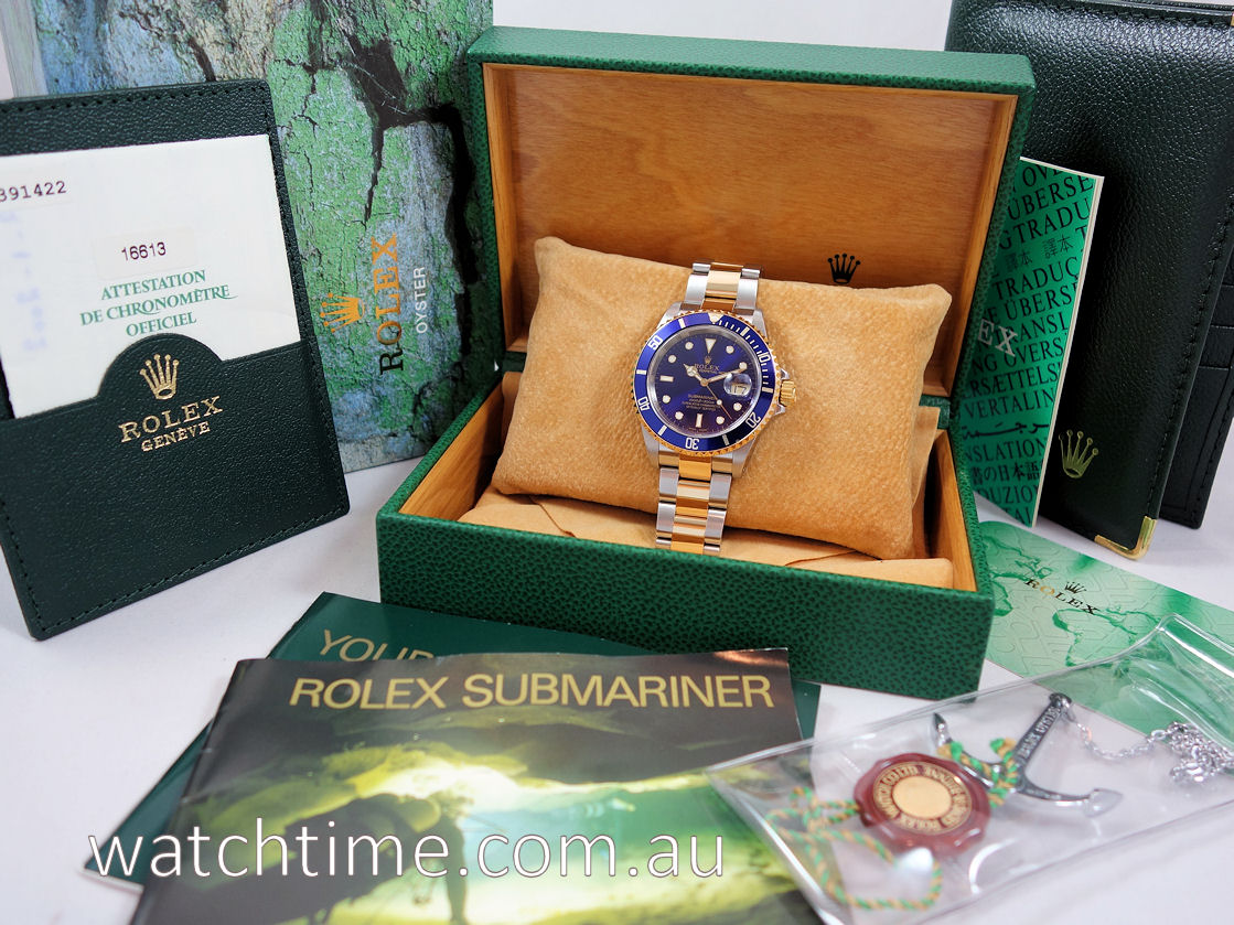 Rolex Submariner 18k & Steel, Blue dial 16613 Complete set!