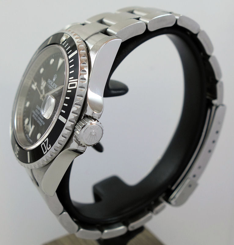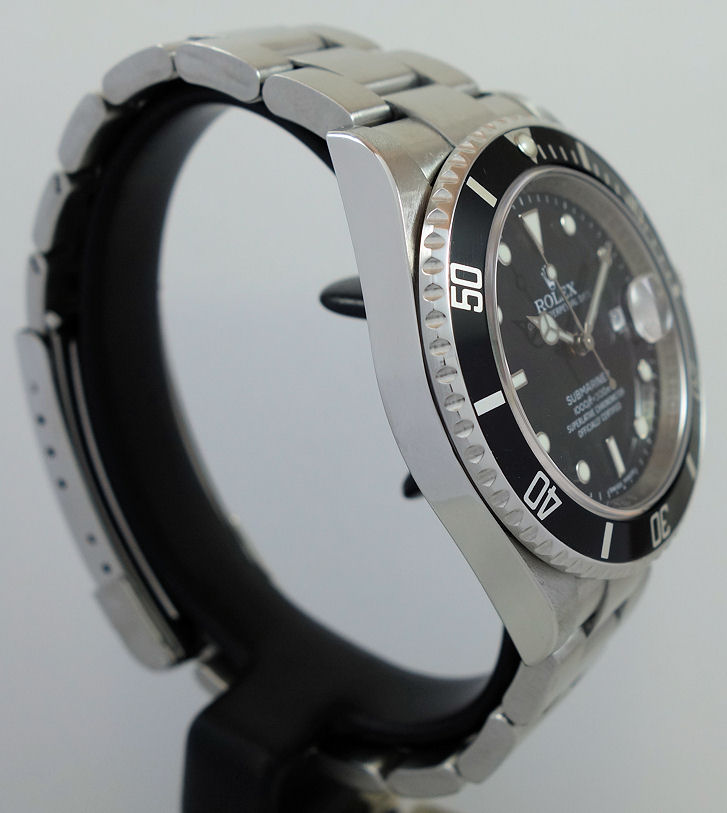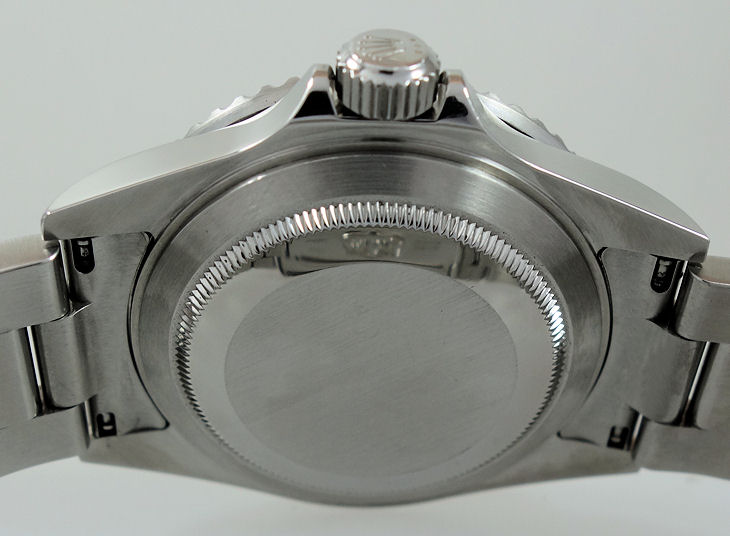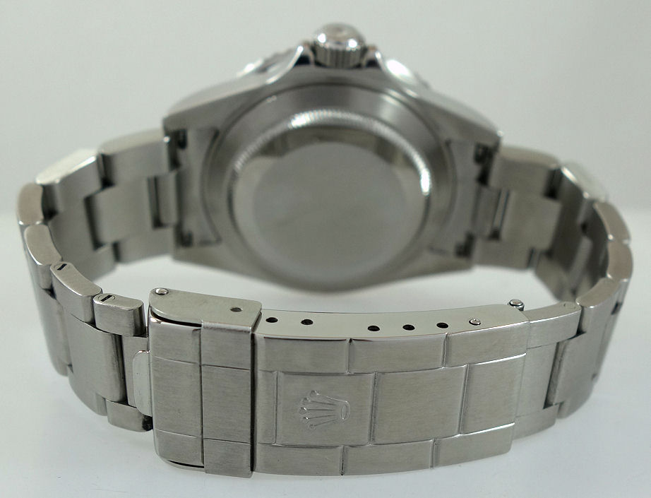 | Band | Stainless-steel Oyster bracelet with solid end-pieces (no holes in the case) and flip-lock clasp. |