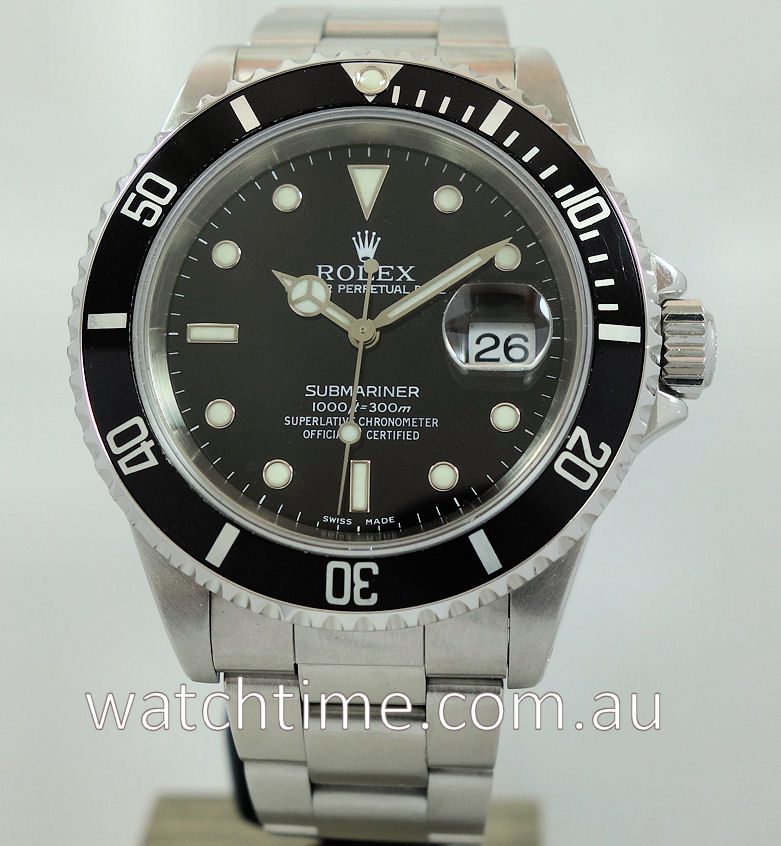 | Dial | Black with luminescent hands and hour indices. Date window at 3 h pos. |