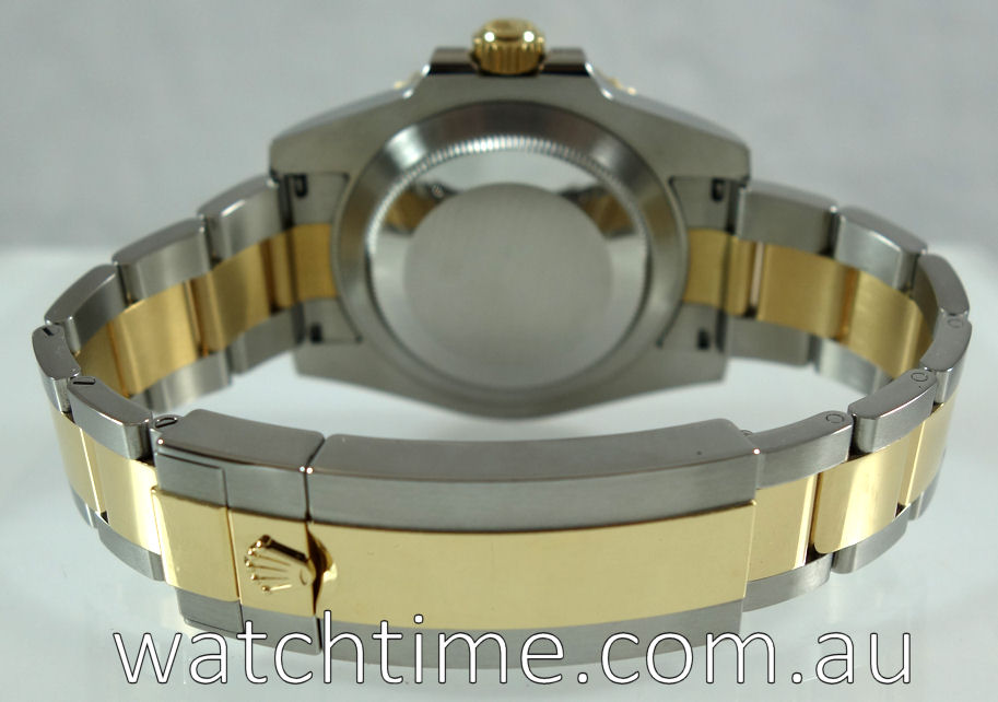 | Case | Stainless-Steel Oyster case with 18k Yellow-Gold and black Ceramic bezel. Sapphire crystal glass. Triplock screw-down winding crown. |