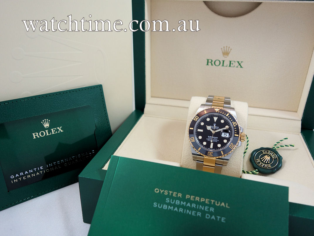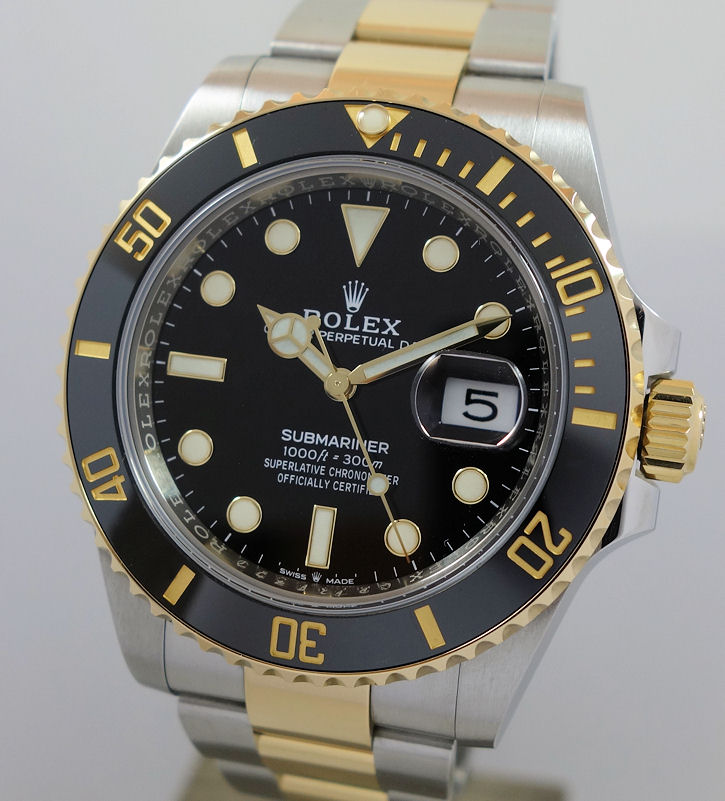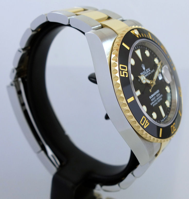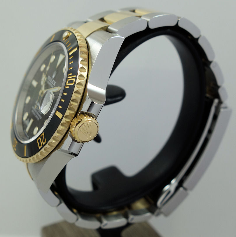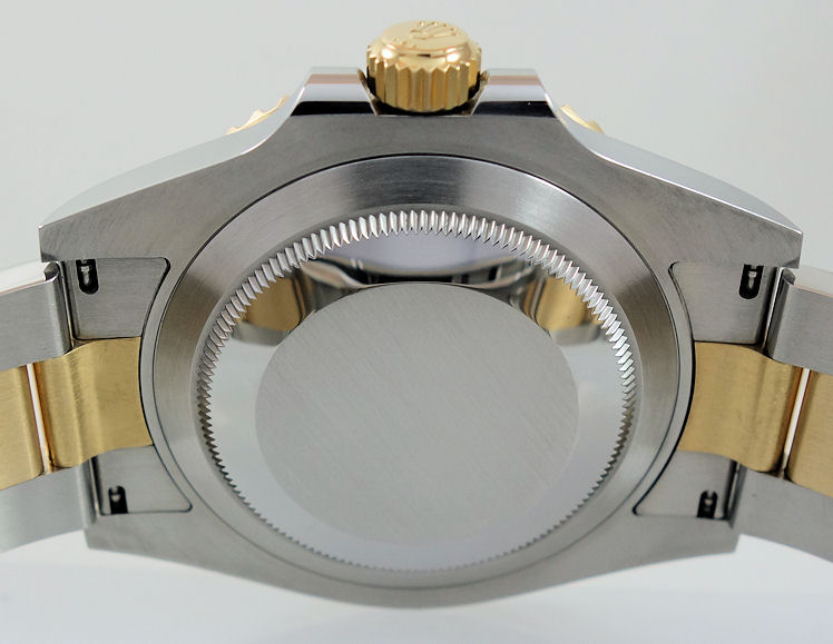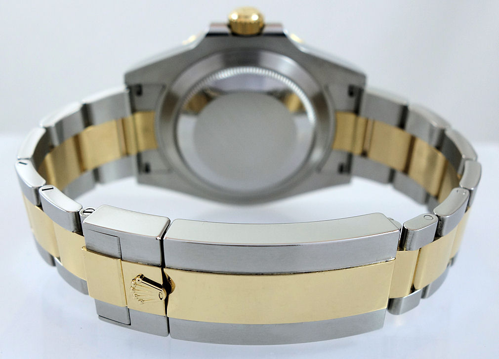 | Case | Stainless-steel Oyster case with 18k Yellow-Gold & black Ceramic uni-directional rotating diver bezel, screw-down crown and Sapphire crystal glass. |