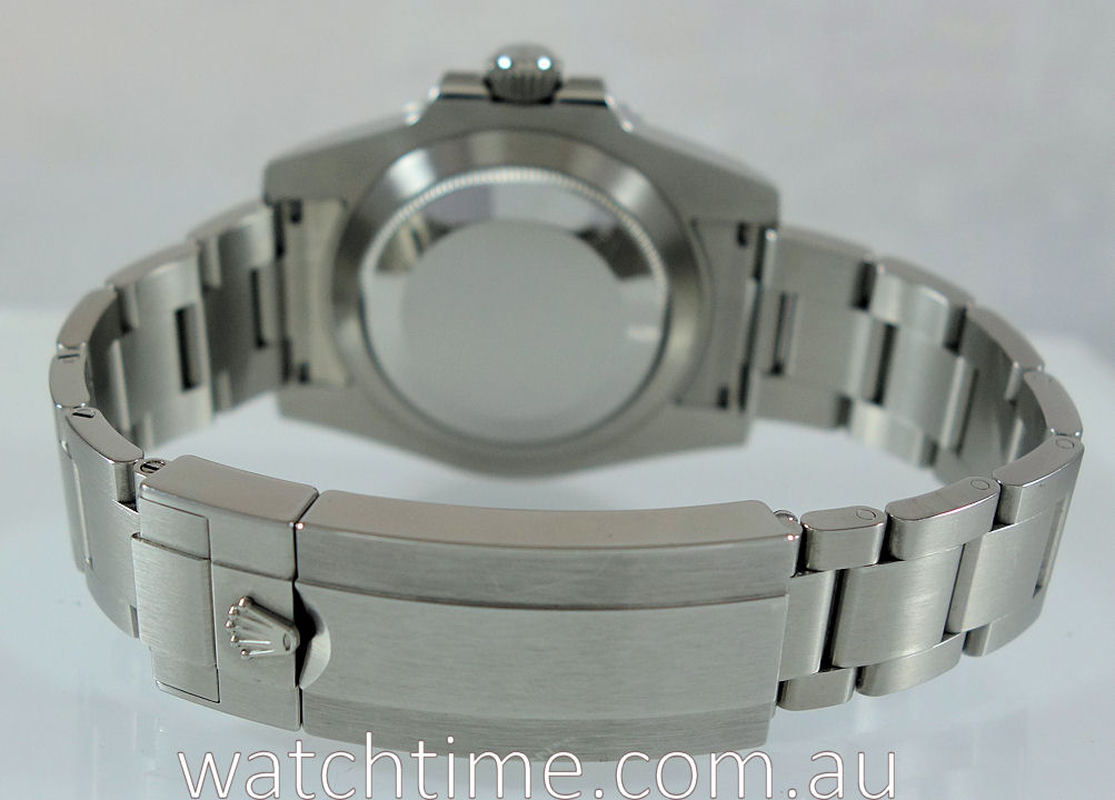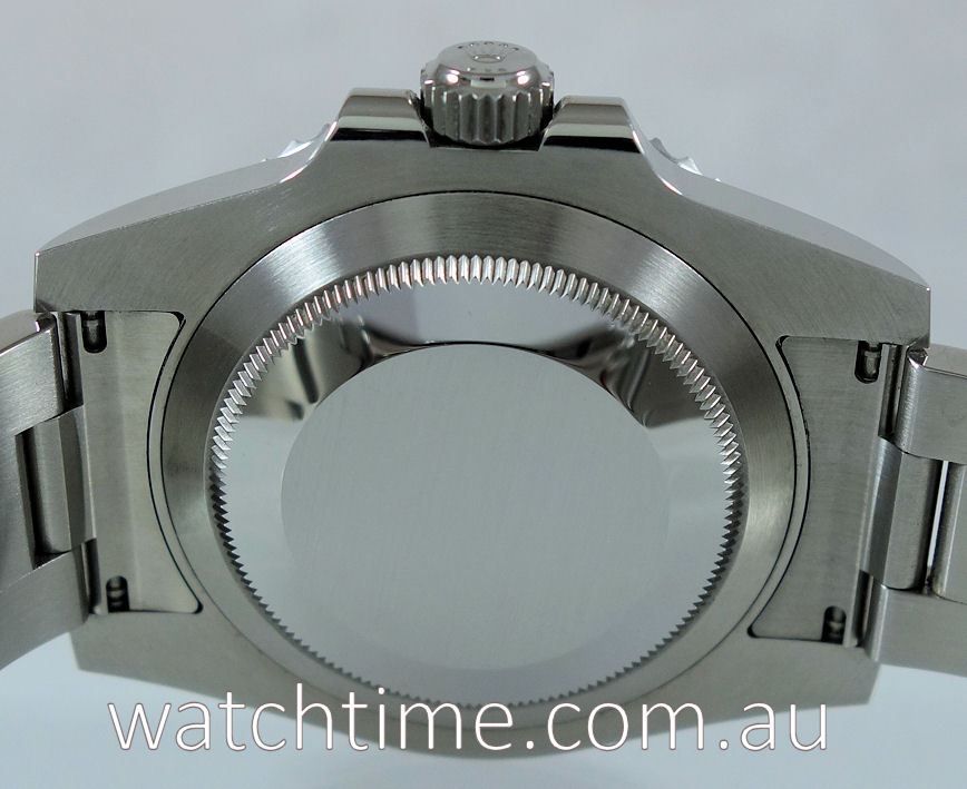 Stainless-steel Oyster case, unidirectional rotating bezel feat. GREEN Ceramic insert. Screw-down crown and case-back. Sapphire crystal glass.