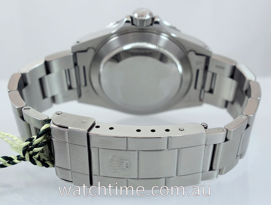 | Case | Stainless-steel Oyster case with screw-lock winding crown and uni-directional rotating diver’s bezel. Sapphire crystal glass. |