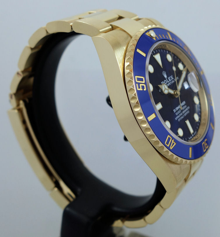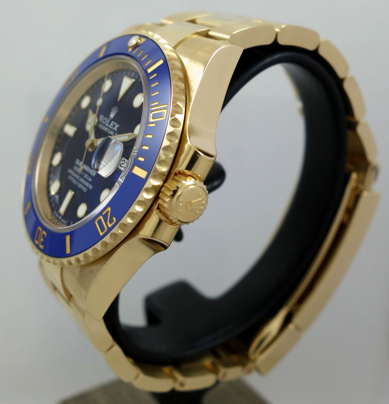 | Case | 18k Yellow-Gold Oyster case with screw-down crown, unidirectional diver’s bezel with blue Cerachrom (ceramic) insert and Sapphire crystal glass. |