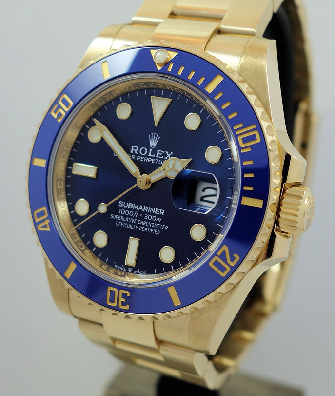 | Case | 18k Yellow-Gold Oyster case with screw-down crown, unidirectional diver’s bezel with blue Cerachrom (ceramic) insert and Sapphire crystal glass. |