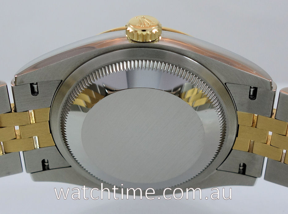 | Case | Stainless-steel Oyster case, 18k Yellow-Gold fluted bezel, screw-down crown and Sapphire crystal glass. |