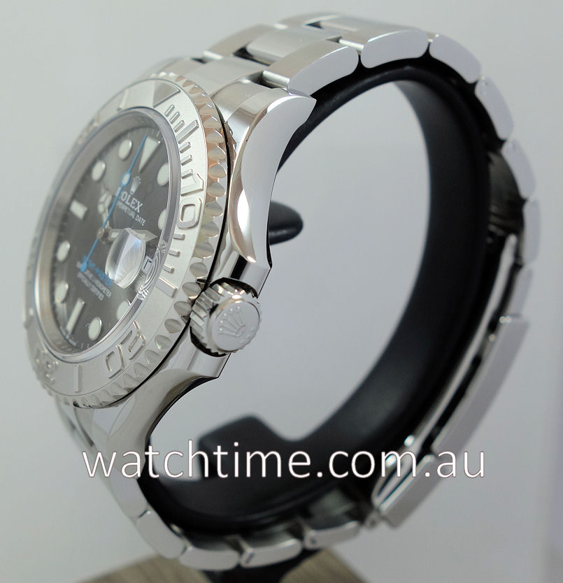 | Case | Rolesium: Stainless-steel Oyster case and 950 Platinum bidirectional rotatable bezel with 60-minute graduated raised numerals. Screw-down crown and Sapphire crystal glass. |
