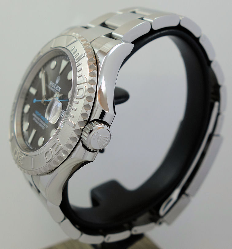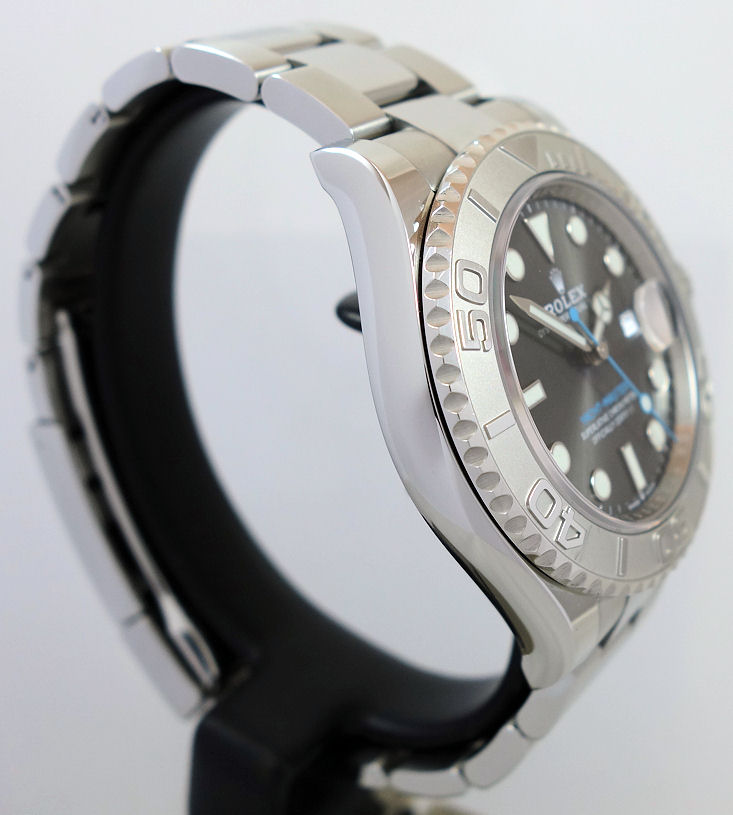 | Case | Rolesium: Stainless-steel Oyster case and 950 Platinum bidirectional rotatable bezel with 60-minute graduated raised numerals. Screw-down crown and Sapphire crystal glass. |